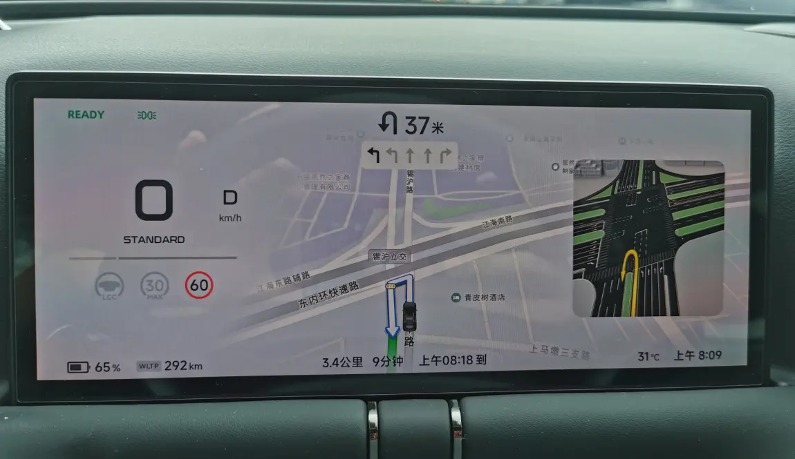 地图模式用来显示所处位置及其周边范围的道路信息,而智驾模式则是重点展示当前道路上的具体详情,可以按驾驶需要和个人喜好进行切换,灵活度进一步增强。
