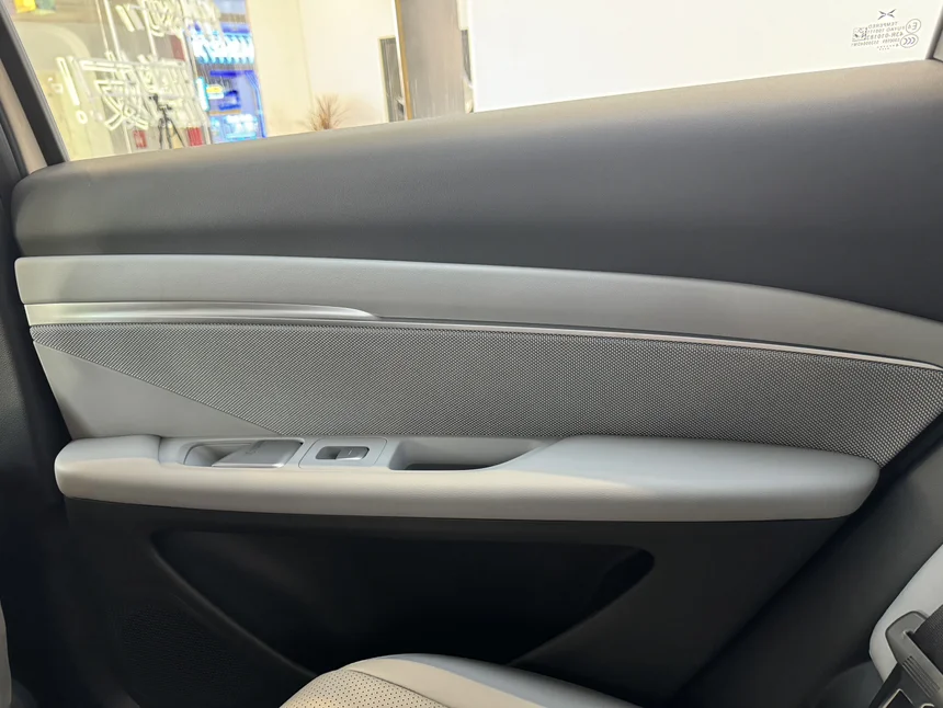 ①车门开启的方式是常规的拉扣,设计的时候放在了车门扶手的位置,这样车门看起来少了一个巨大的门把手让整个视觉效果看起来更加的工整!