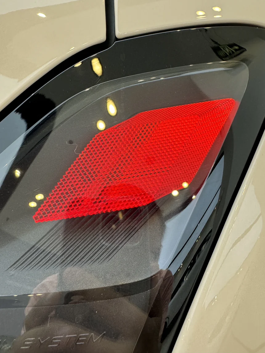 ⑤立体的尾灯模组,尾灯最显眼的地方是一个红色的四边形和一个小方块组成的,离近仔细看是可以看到这两个小模组细节打造的非常的精致,可以看到一层一层的叠加在一起非常像一个立体的 3D 高精建模!