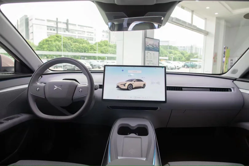 进入车内,简约的设计风格让人感觉十分舒适。几乎没有物理按键,所有信息和内容都集中在 15.6 英寸的悬浮式中控屏上。车机采用高通骁龙 8155 座舱芯片,标配 16GB 内存,系统响应迅速,操作流畅。全新的车机 UI 设计、交互方式以及音乐地图等,为用户带来简洁的视觉享受与有趣的交互体验。此外,还提供了“敲木鱼”等趣味车机体验。双色涂装的平底式方向盘只有两个滚轮控制部分功能调节,方向盘以及中控屏后侧拥有狭长的贯穿式空调出风口设计。