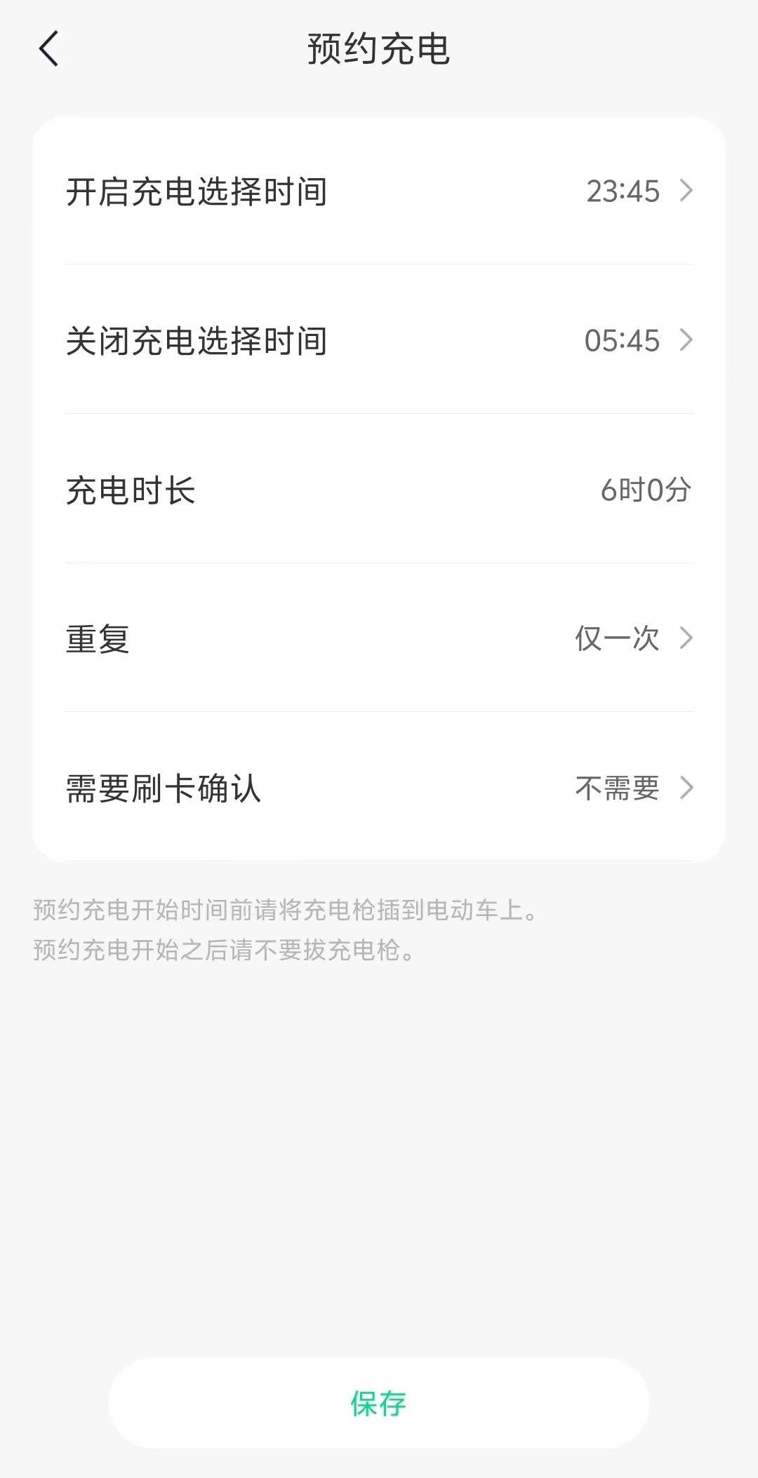 在地下停车场充电自然不用考虑防晒避暑问题,更多考虑是电费优惠。我问过当地的电网公司,停车场家用充电桩的用电费用是统一的,全天24小时一个价,不到0.6元/度,比外面要便宜,但是在鹏友圈看到其他地方的家用充电桩电费收费全天还是分时段,价格不一样,基本是晚上用电会便宜一些。那么停车后可以在充电桩的app上进行预约充电,选择电费便宜的时段即可。