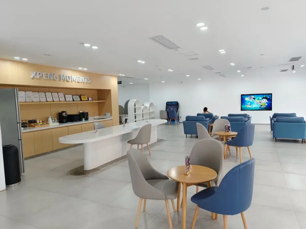 (选择来五象汽车生活广场二期站充电,同时可以来这里做售后保养,这里有车主休息区,可以体验新车、吹空调、打游戏、吃零食……)