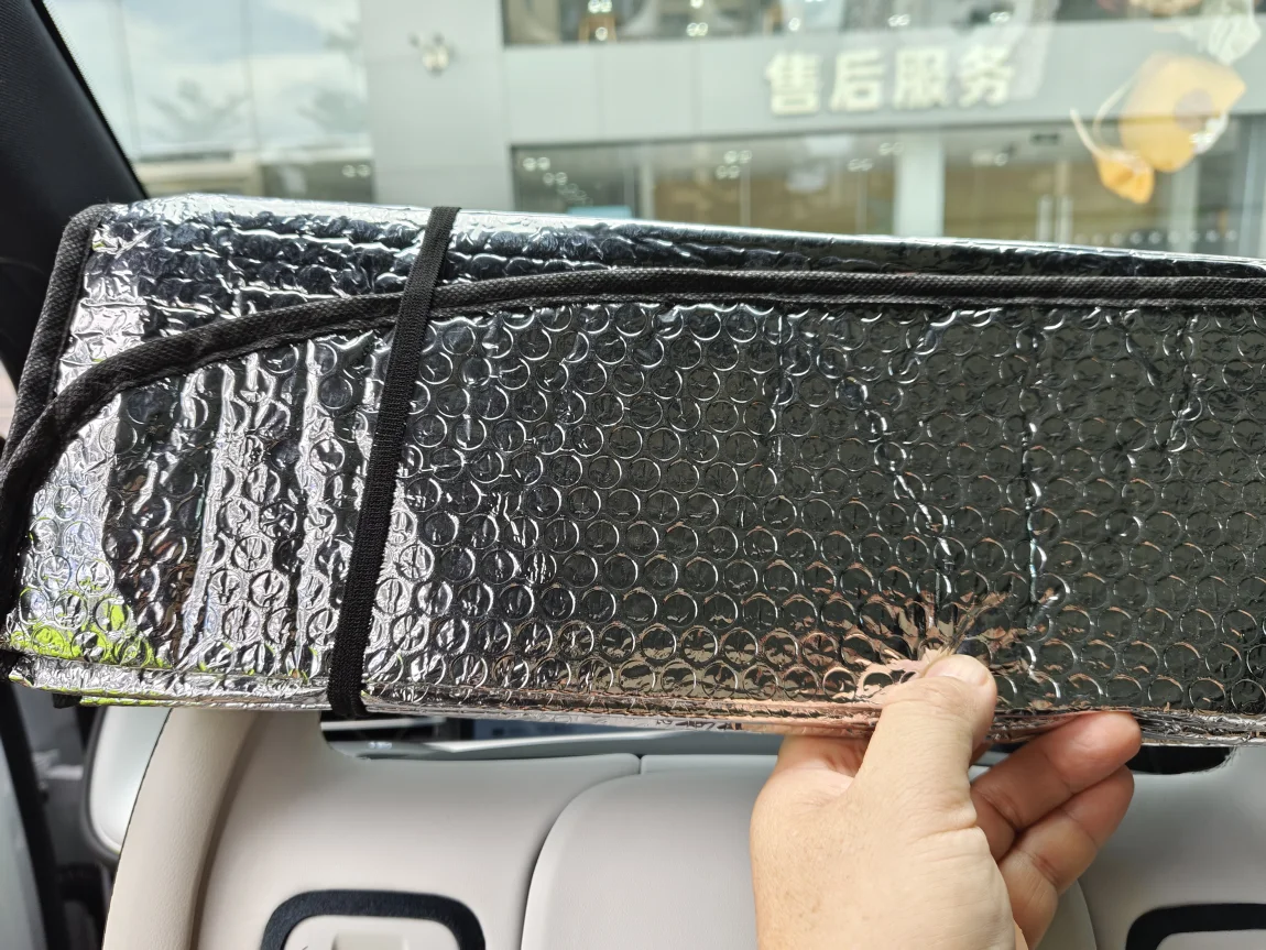 另外,在露天停车场充电,可以给车前挡玻璃加一个遮阳帘,类似我发图这个,价格不贵,但是效果很好,展开和收纳都非常便捷。