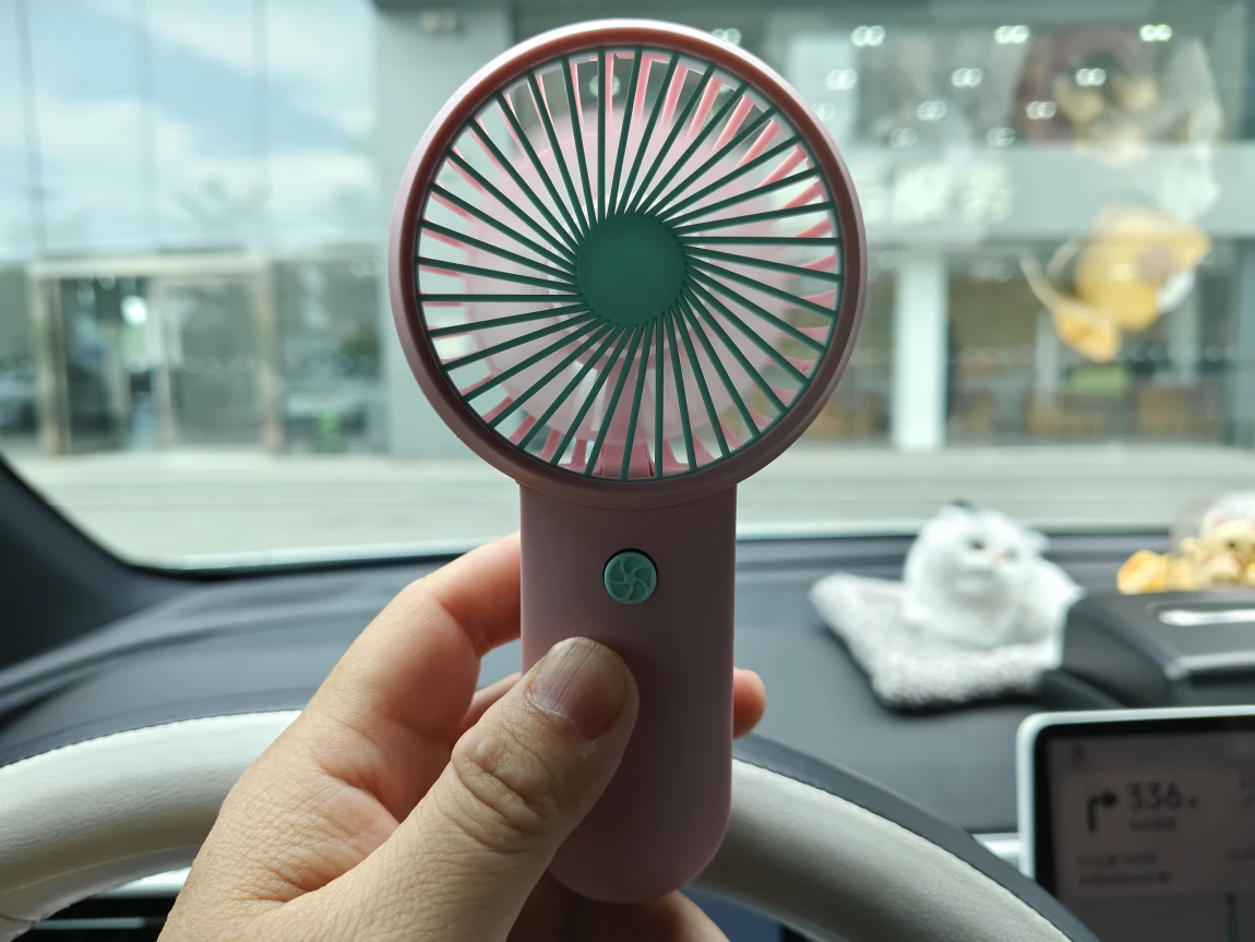 小鹏的汽车是一块大天幕,虽然这个天幕也有隔热的功能,炎炎夏日下还是建议装一个天幕遮阳帘,就买小鹏商城官方出品的。充电完毕,进入车辆之前可以提前在小鹏app上开启“极速降温”,上车后稍微开一下车窗,让空气对流一下再关窗,这样车内温度就会很快降下来。我还在车上备了一个充电小风扇,等空调降温的时候可以吹一下,平日就放在扶手箱里面,很方便。