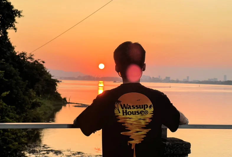周边好多地方可以打卡,但实在是太热了,进去咖啡店里面吹空调了,饮品20块左右一杯,中规中矩,鸡蛋仔15块一份,等到下午6点再出来拍夕阳