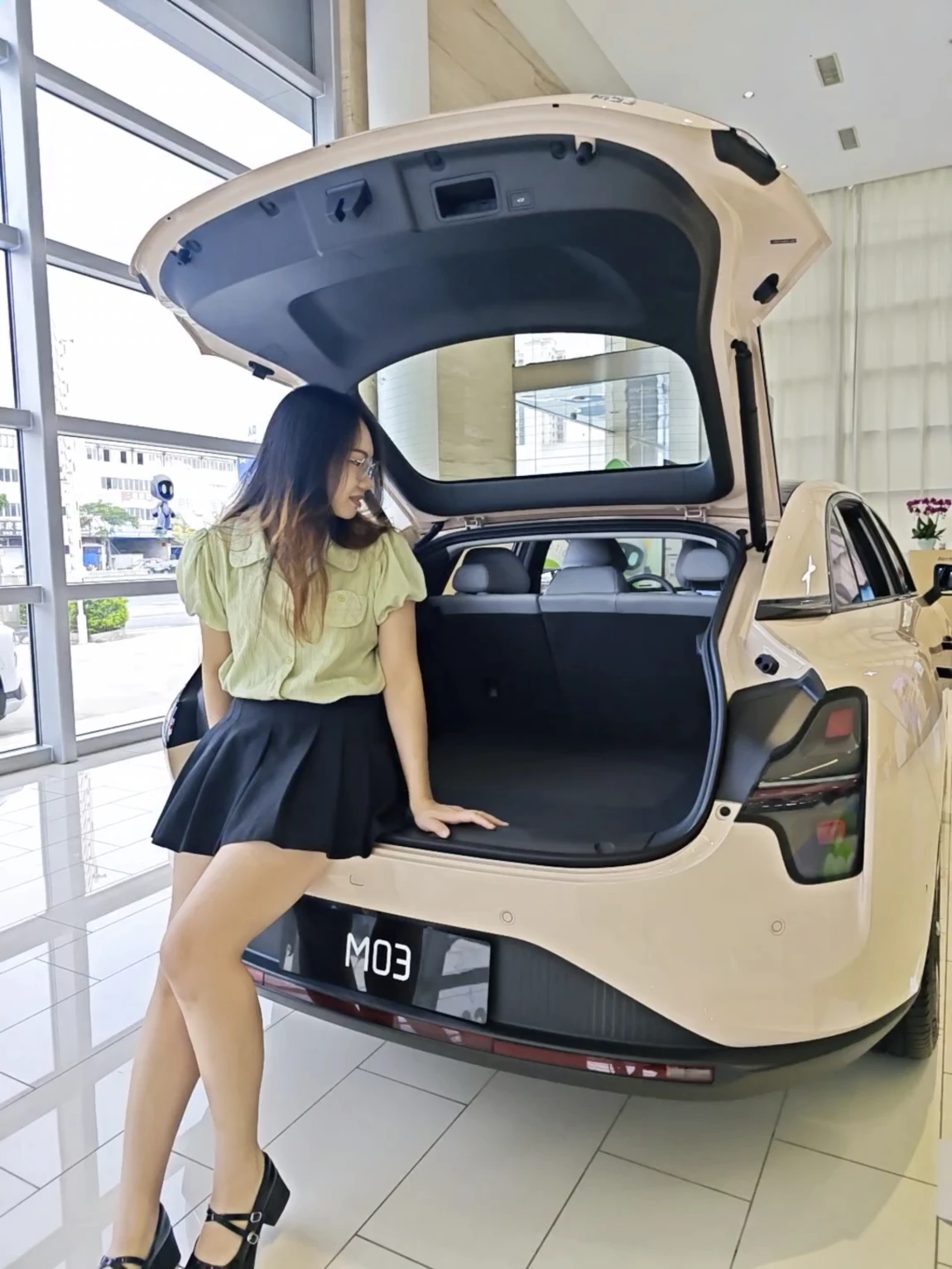 在完成作品以后,还带她一起去看了M03,然后还在车上玩起了贪食蛇,而且是联网版的,这个车机也太流畅了~!