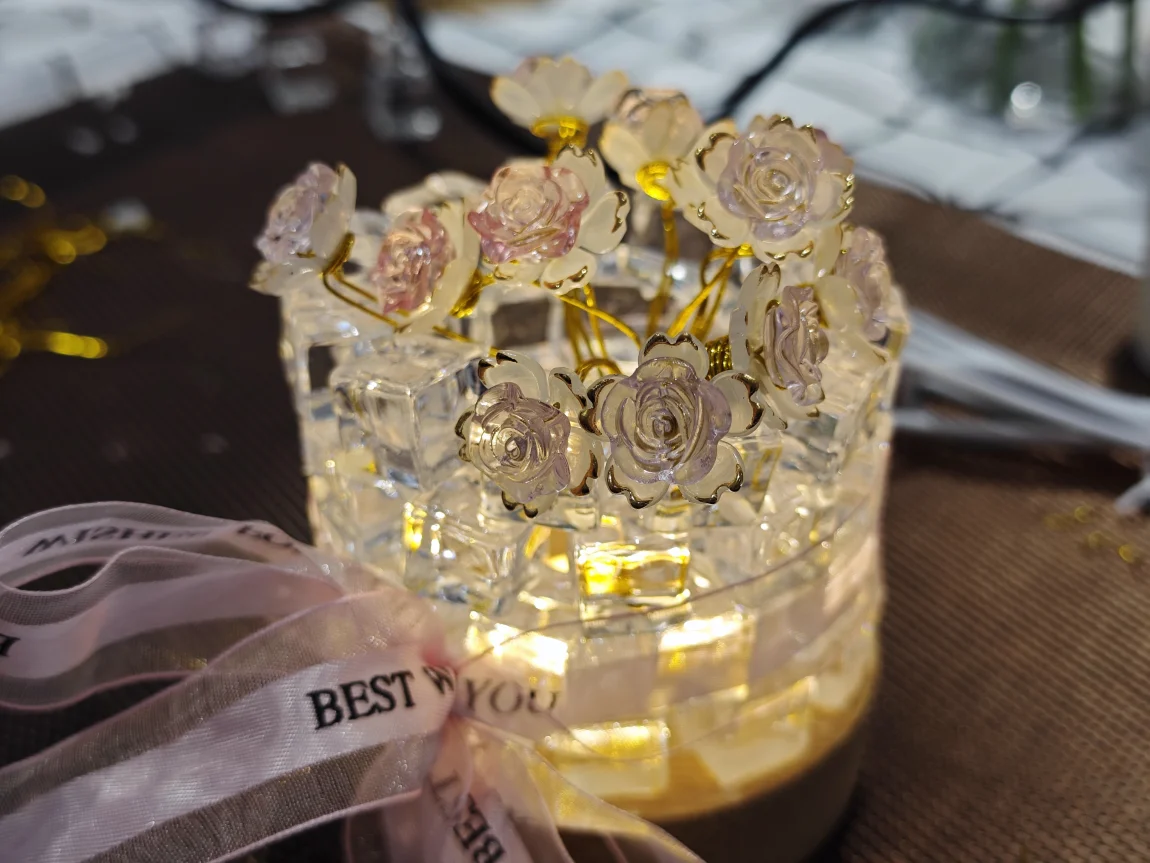 DIY环节,我按照老师教的方法,并且加入了自己的创意,做出了独一无二的玫瑰花夜灯,就这样,我的作品完成了!一份满满心意又浪漫的七夕礼物,诞生了~!
