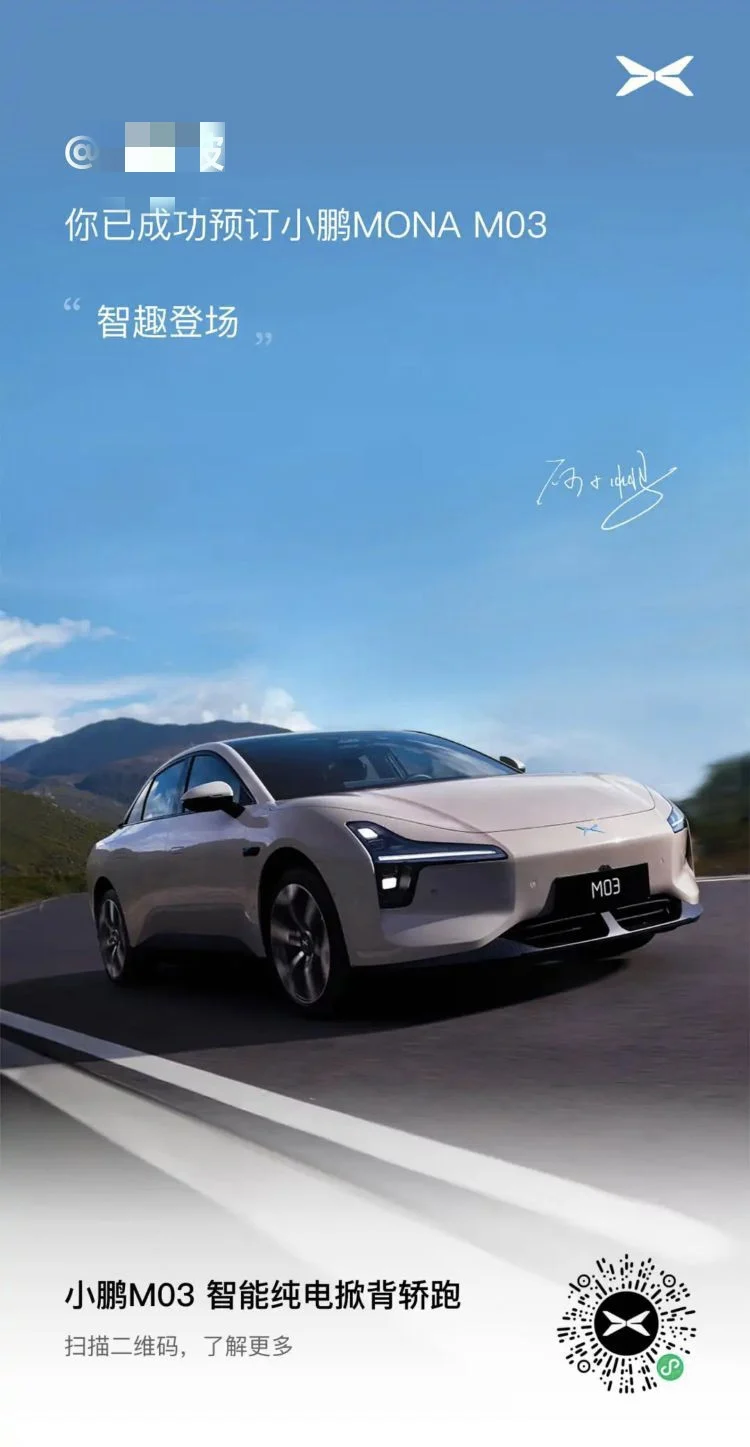 #小鹏MONA M03开启预订#作为一名老车主,非常喜欢小鹏MONA M03这款全新产品。动感的外观,配合溜背造型,实现了超低的风阻。内饰的设计非常简洁,但是功能齐全。智能座舱一如既往好评。语音控制响应速度快,车机也非常流畅。智能驾驶一直是小鹏的强项,在MONA M03上同样非常强大。全景天窗,坐在车里抬头也能看到风景。后排空间也不小,后排座椅也很舒适。这是小鹏经过十年积累精心打造的一款车,相信一定不会让消费者失望。作为小鹏的老车主,一直特别支持小鹏。果断预订,坐等价格。期待~