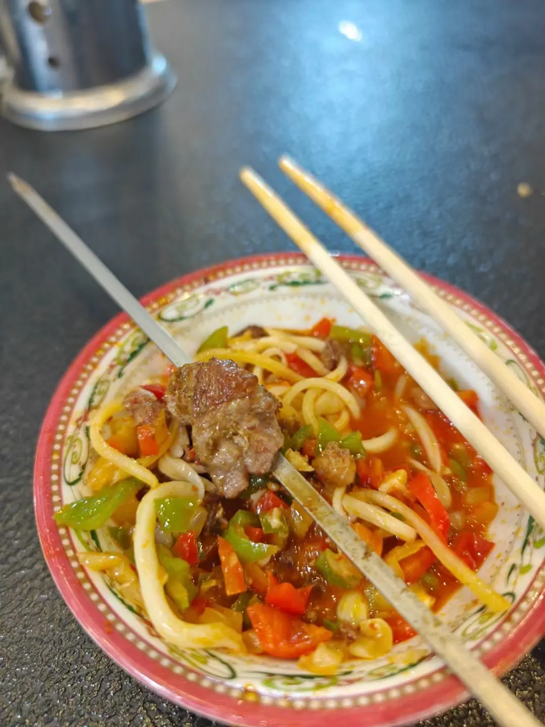 到了那拉提,住了一晚上,本来准备去那拉提空中草原被很多博主劝退。在那拉提吃了少数民族的餐提。在外面看装修感觉吃不起的样子。没想到价格超级便宜,分量大,味道好。感觉比乌鲁木齐的大巴扎还正宗。