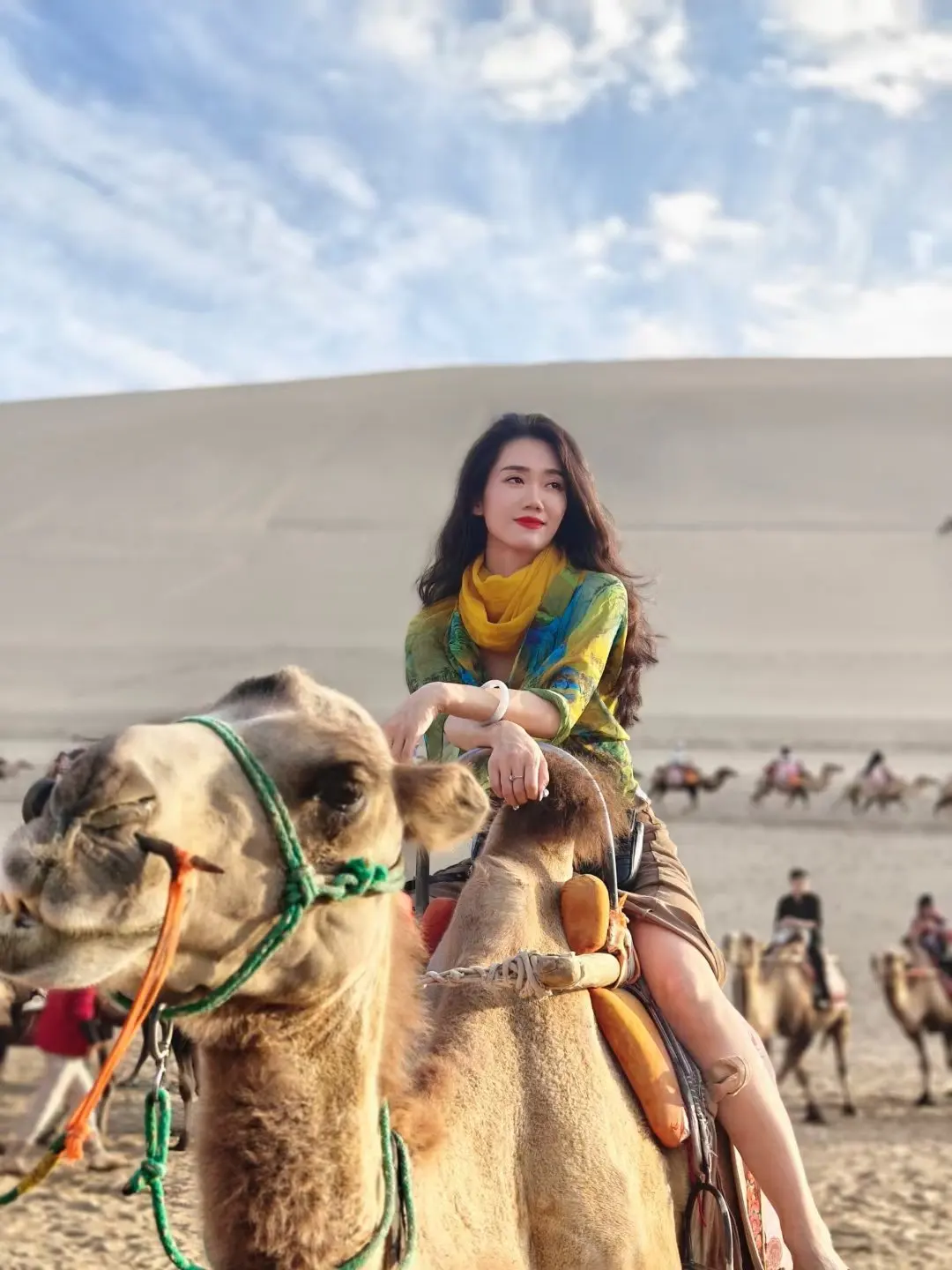 一天一夜开到敦煌。鸣沙山骑骆驼,女儿超级兴奋