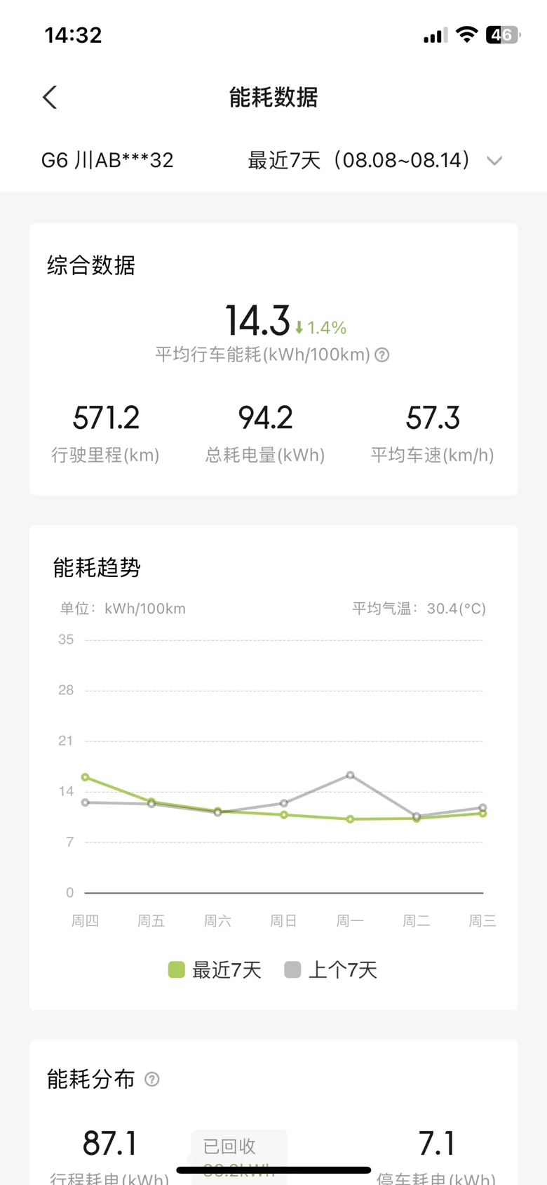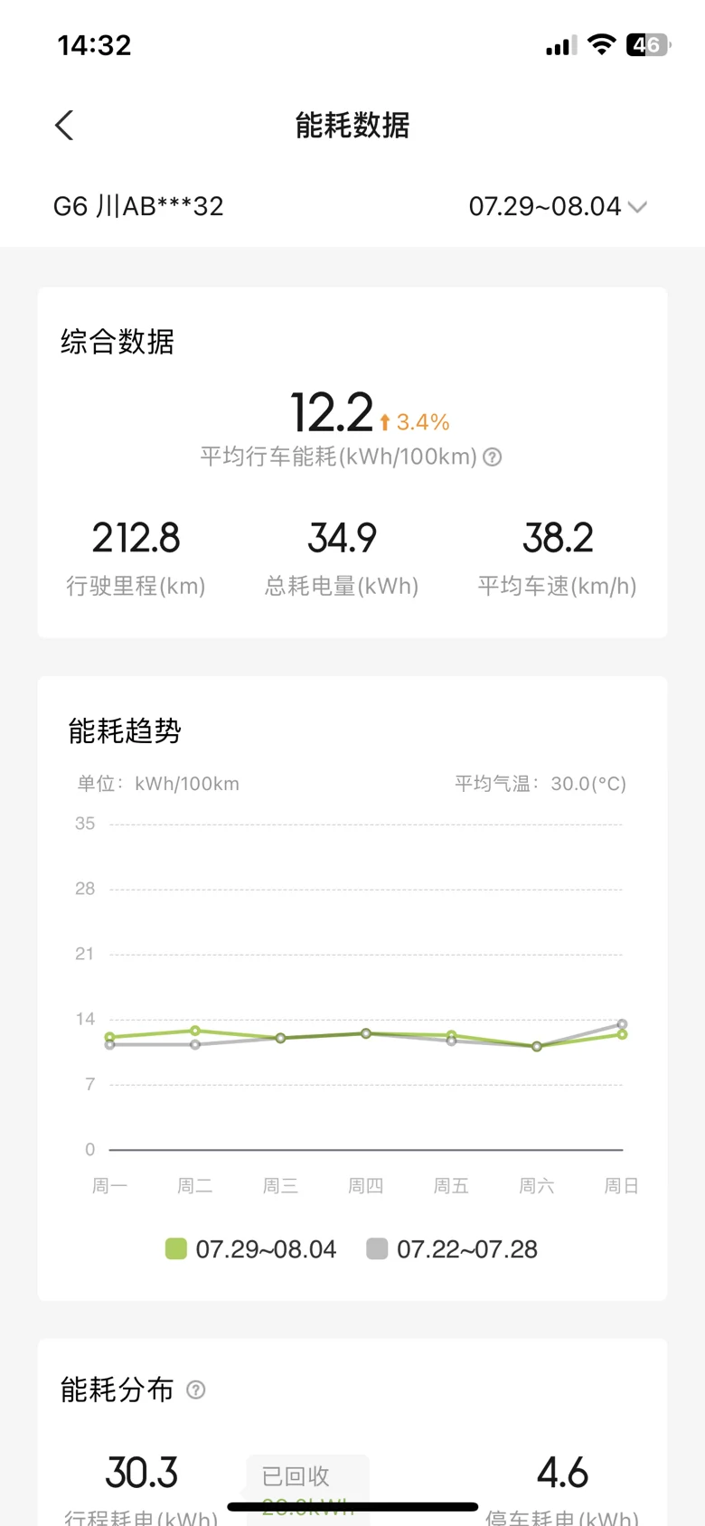 充电补能:上车前充满,表显460,中途无补能,电费30元
