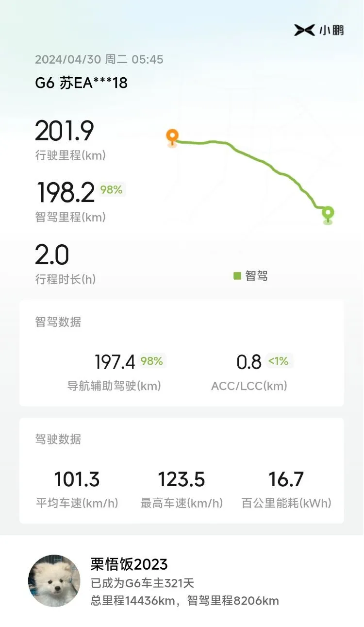 我开着小鹏 G6从苏州出发,前往南京,全程大概 200 公里左右,其中有城市道路,但主要为高速路。