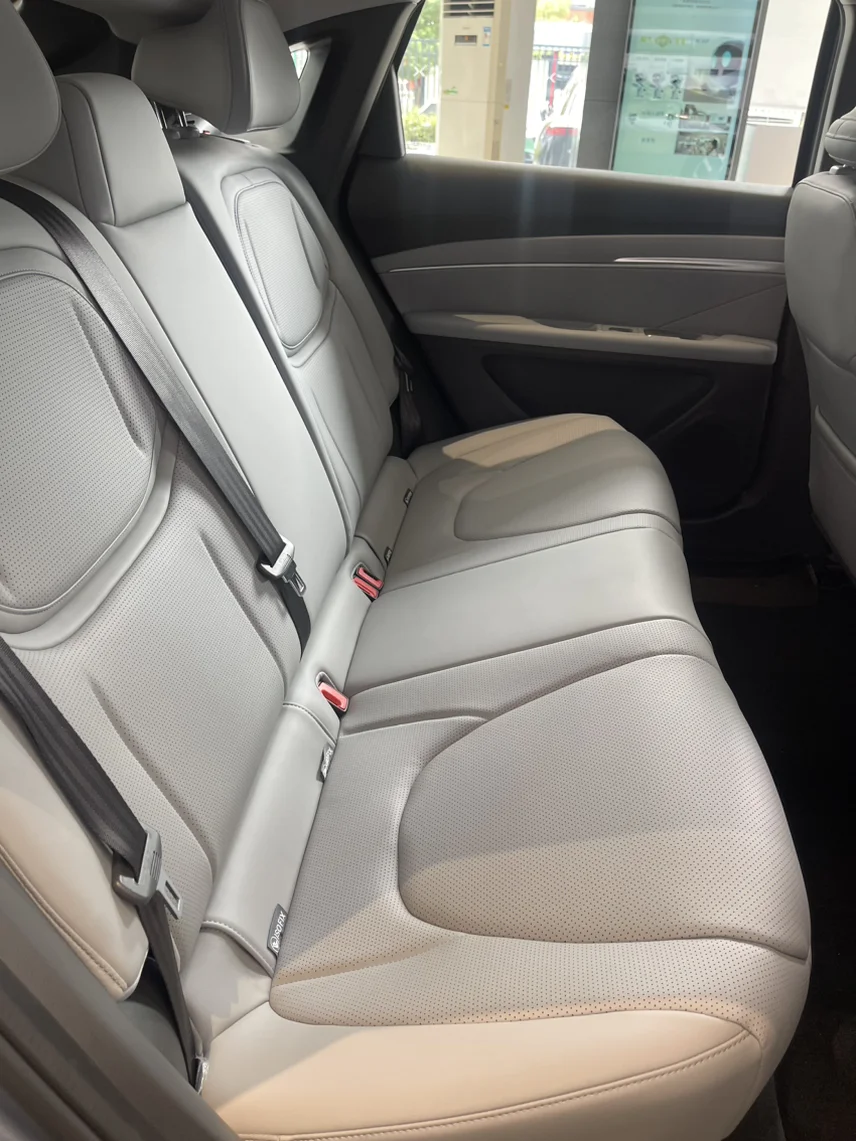 后排空间中规中矩,比P7宽敞,座垫前部上翘,比P5舒服。