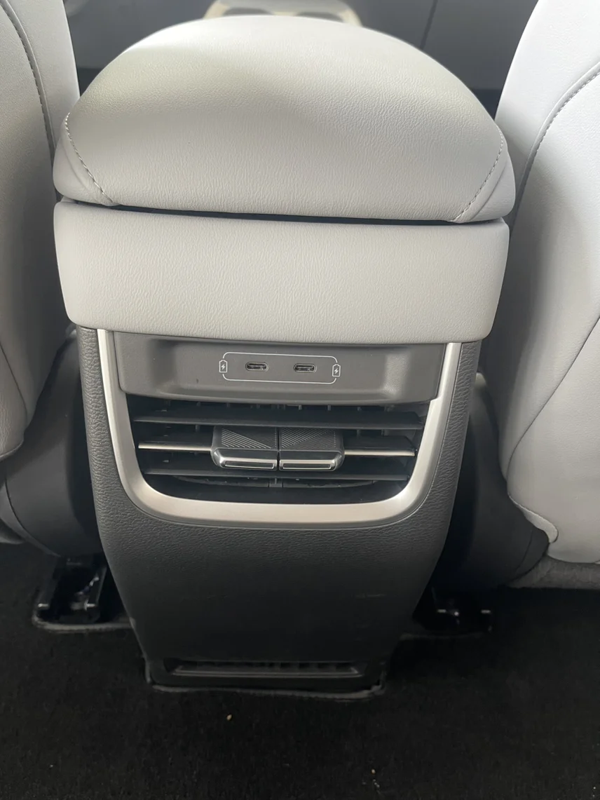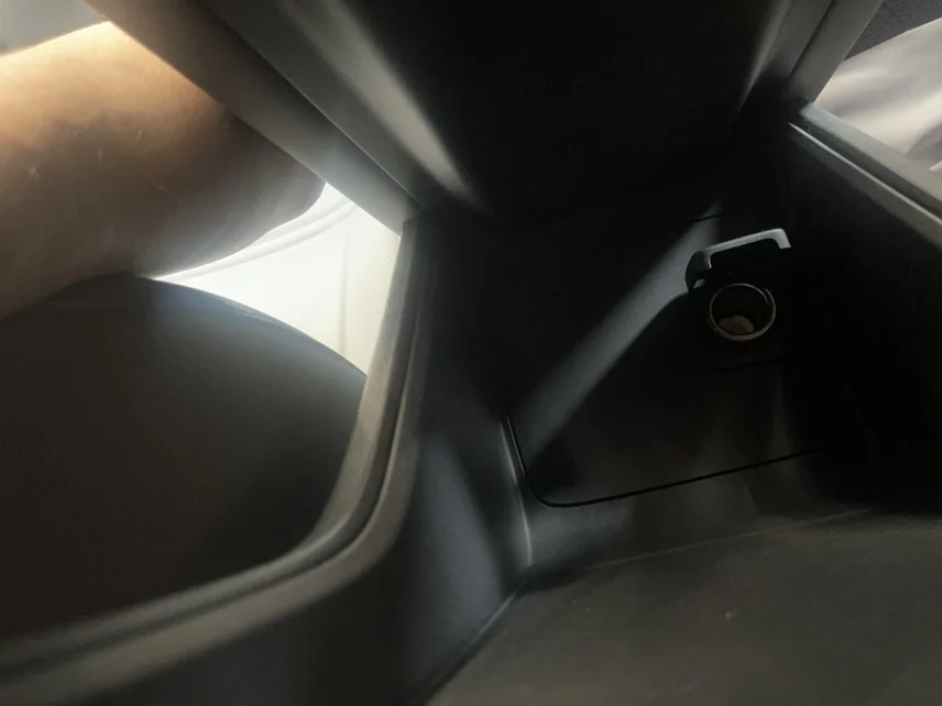 在研究了一下中央扶手台的无线充电板,储物盒以及行车记录仪usb存储插头后我突然发下它下面镂空的储物空间超级大,用手试谈了一下,才发现里面居然还藏着一个点烟器电源插头。