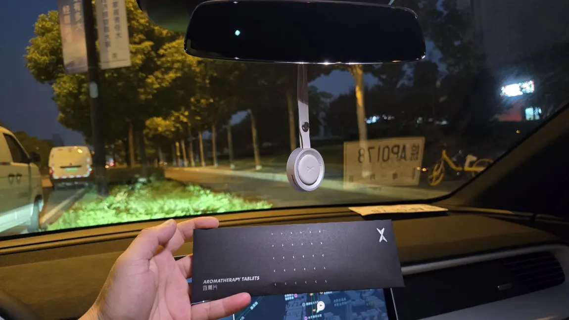 2、官网香薰挂件,这个挂件挺重的,而且磁吸设计,装上去真的非常好看,简约的美,而且非常推荐晚香凝玉,味道真的跟酒店大堂的味道,很淡而且非常好闻(原厂送3片不同味道,大家新车提车后,会送50.1抵50的优惠券,大家可以买8元买6个香片,这个还是非常划算的)