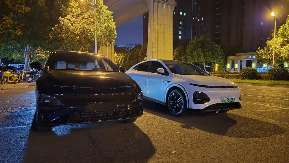 回来路上,停车买东西,回来偶遇辆白色G6并排停车,缘分相遇,拍一下两个颜色对比(因为天黑了,所以我车黑色拍的不是很清楚)
