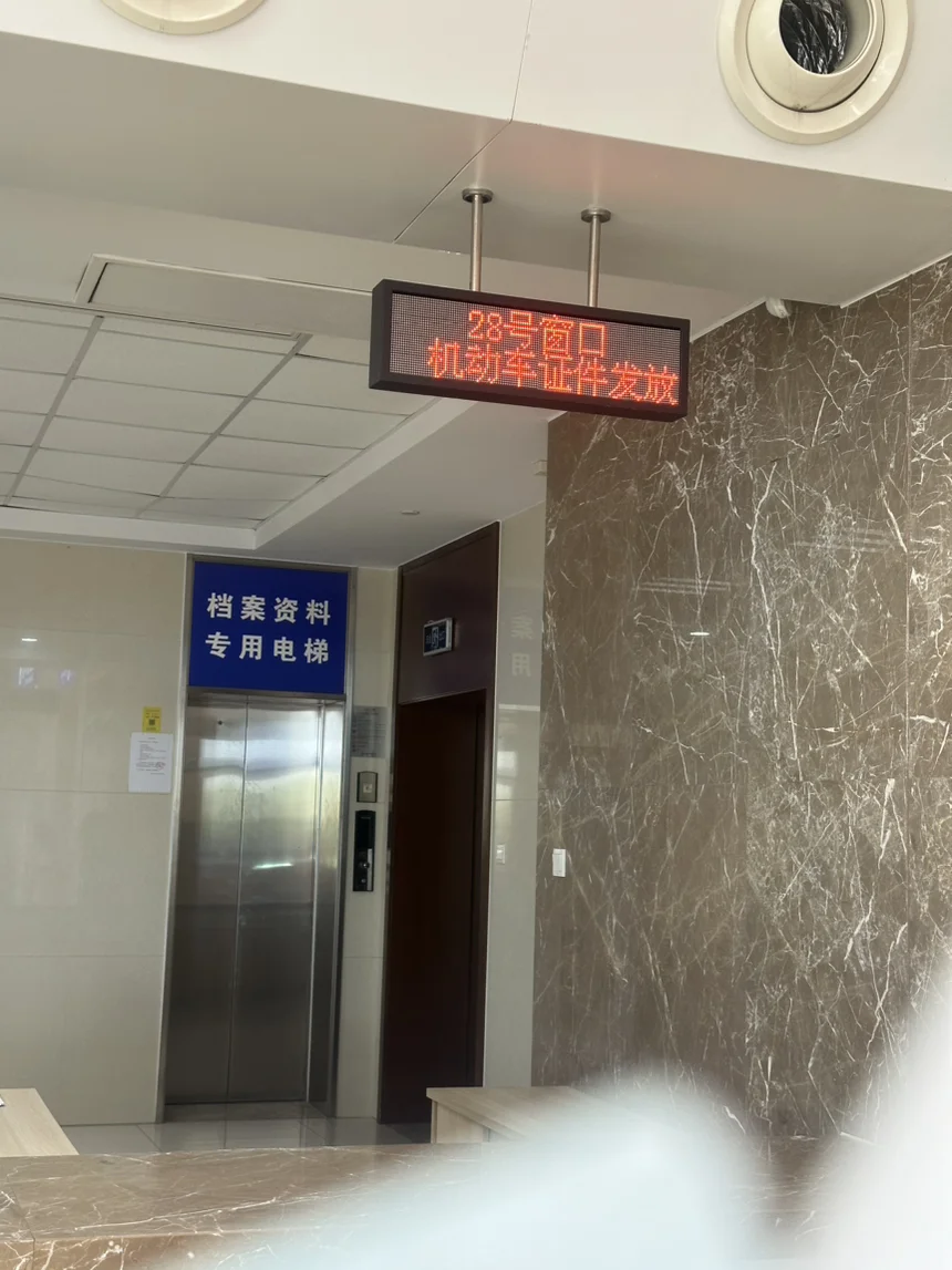 到大厅先去服务台刷身份证取号!关注大屏看看自己会去哪个窗口,办完扫码付10元工本费,最后会给p5的单子去28号窗口(在最左边)等新的行驶证啦~