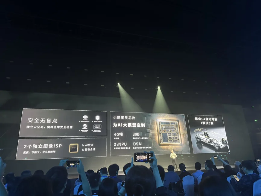 何小鹏称,图灵芯片是全球首颗为 AI 大模型定制的芯片,拥有 40 核处理器、2 个独立图像 ISP、一个用于行车感知,一个用于用户可感知的图像,无论黑夜、下雨天、逆光都能清晰。 同时,它还拥有 2 个处理神经网络数据的 NPU,最高可运行 30B 的大模型参数。今年 5 月,小鹏在 AI Day 推出了能够量产上车的端到端智驾大模型,由神经网络 XNet、规控大模型 XPlanner、和大语言模型 XBrain 三部分组成,图灵芯片的出现,为这套智驾大模型的技术打下了基础。