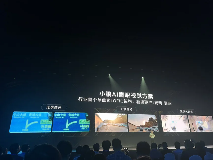 目前,小鹏汽车已经在量产车型上实现了轻地图的 L2 级辅助驾驶,待到今年四季度,小鹏将实现轻雷达、轻地图,且支持门到门的智驾体验。此外何小鹏还称,小鹏将会在 2025 年下半年实现类 L3 智能辅助驾驶,百公里平均接管次数小于 1 次;2026 年将解决 99%的极端问题,甚至在部分低速场景,驾驶员不需要待在驾驶位。这些目标的实现,有赖于小鹏今晚推出的全新一代小鹏 AI 鹰眼视觉方案,在 AI 的帮助下,这套系统的感知距离提升了 125%,识别速度提升了 40%,有效效视觉感知信息量提升 8 倍,时空理解能力也得到增强,意味着智驾系统对于交通参与者的预测能力得到了增强。