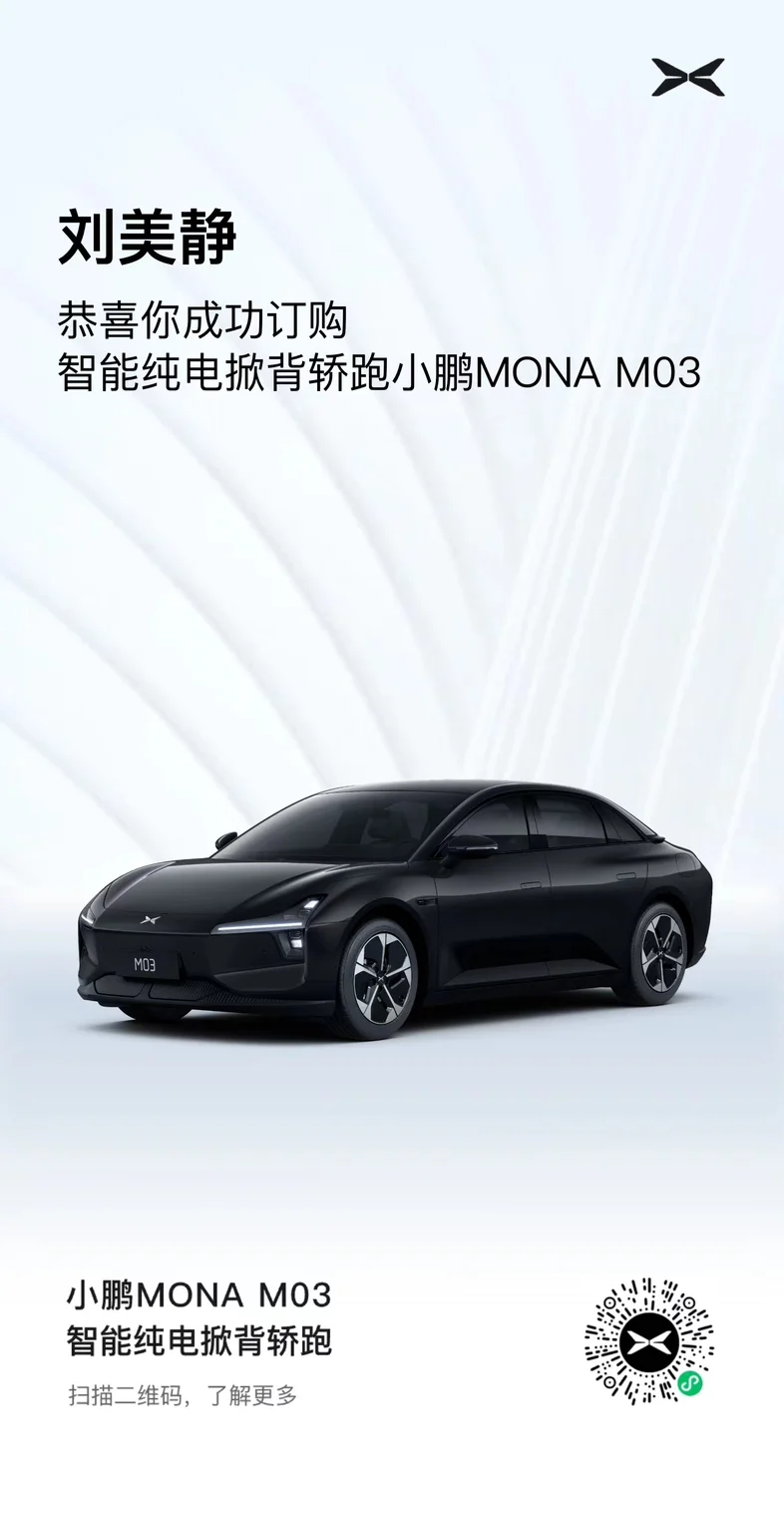 你好,小鹏。这是人生中第一辆真正属于自己的车,几年前,还没有独立经济能力之前觉得小鹏P7遥不可及的梦想。2024年的今天我靠着努力工作成为M3的第一批车主。别人买车看半年,我只用了3天。今天是个值得开心的日子。买到一辆适合的车就像遇到一个灵魂契合的伴侣,满心欢喜,即将迎接我的大玩具。