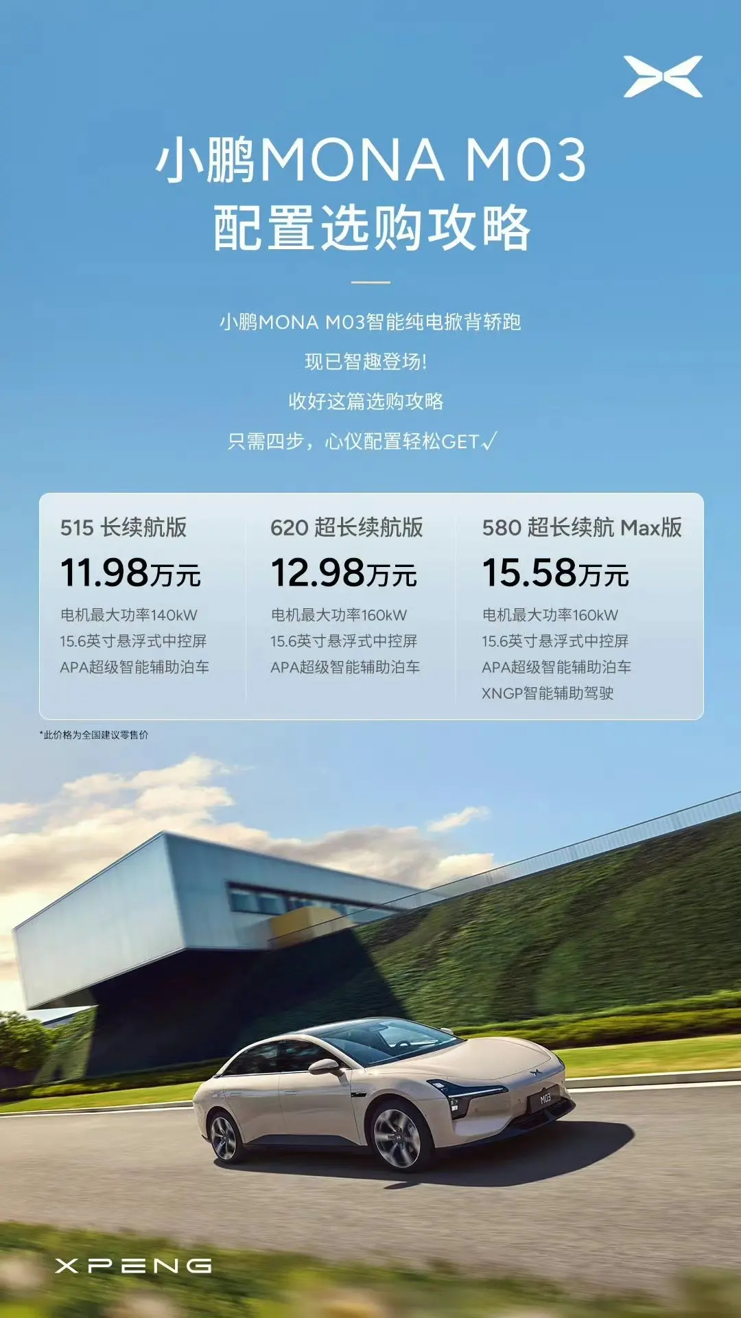 在价格方面,小鹏M03的定价非常具有竞争力。它既不像一些高端电动车那样价格高昂,也不像一些低端电动车那样质量堪忧。小鹏M03的价格定位在中端市场,性价比非常高,是一款非常值得购买的智能电动车。