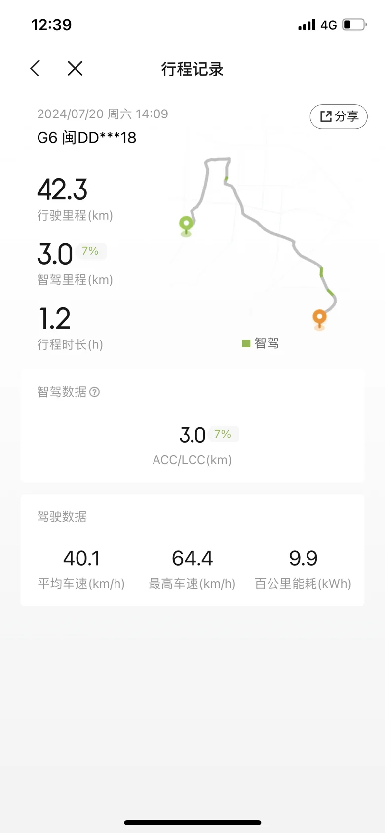 第二次是从泉州南安石井出发到泉州晋江围头,总行驶里程42.3km,百公里能耗居然做到了