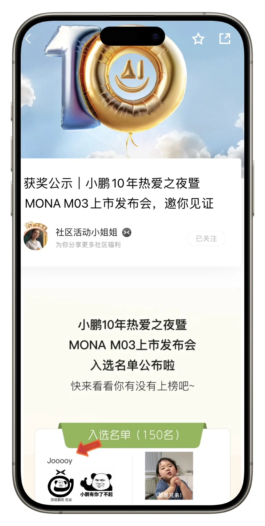 没想到,万万没想到,这次幸运女神眷顾我,被邀请参与小鹏10年热爱之夜暨MONA MO3上市发布会
