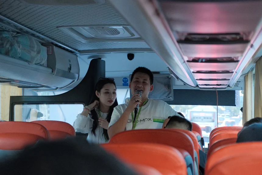 去程下班高峰,比较堵车,我们ʙ组成员在巴士上开始自我介绍和互动起来,我们气氛B组绝不能输