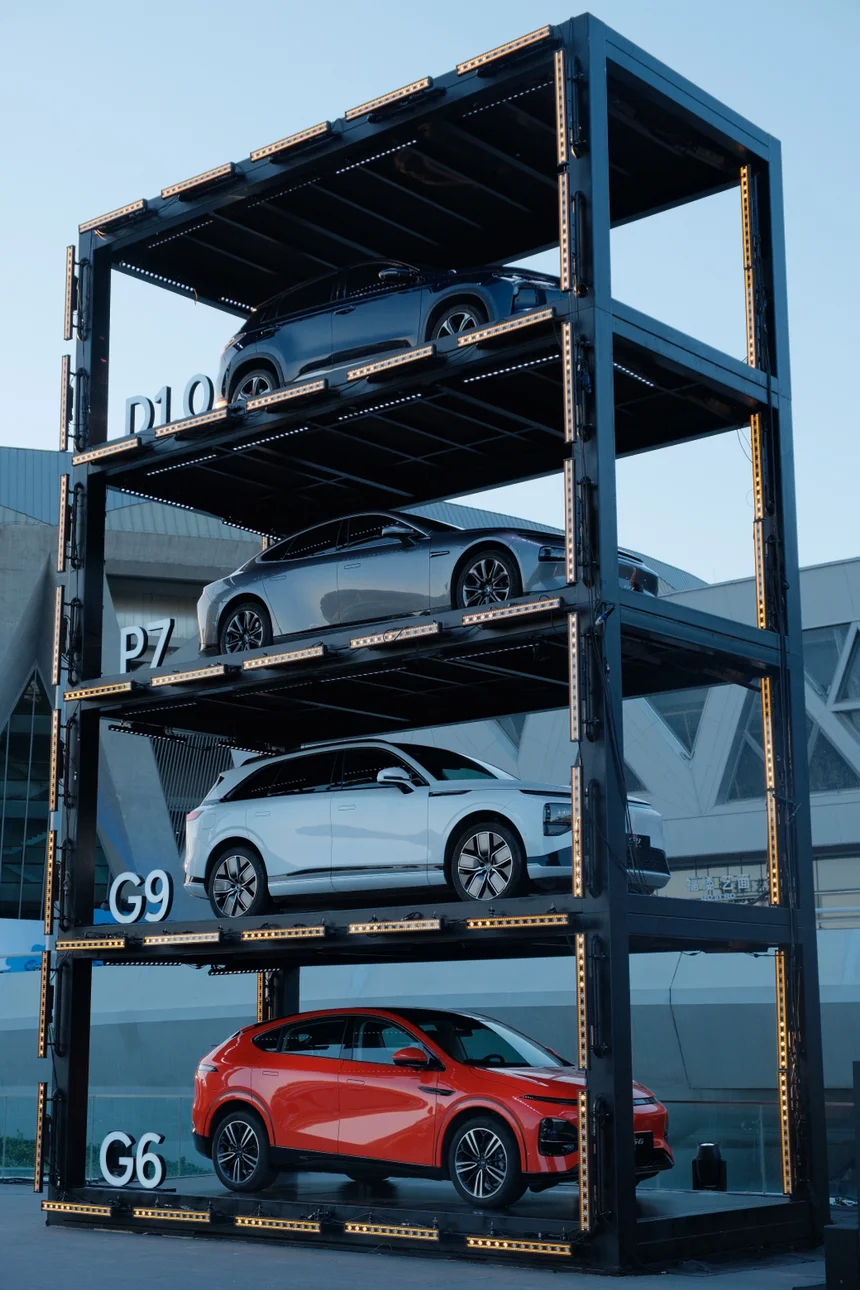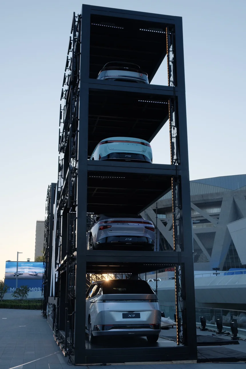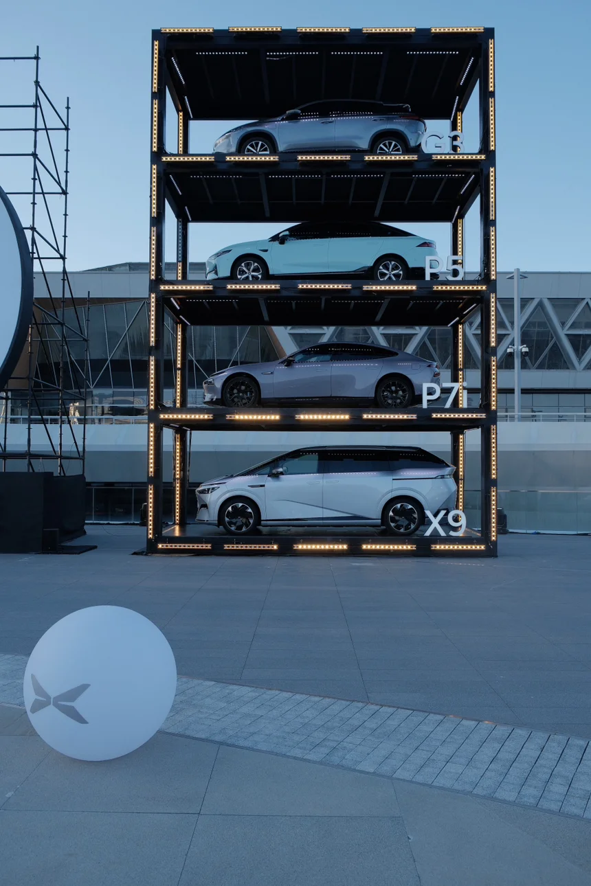 本次外景鹏厂真的搭得非常用心,下了宝宝巴士我真的有被震惊到,非常震撼,高级,赛博朋克,未来,科技,我想不出更多的词来表达了,本次长知识,小鹏还有一辆初代版本也展示出来了,D10(图三)