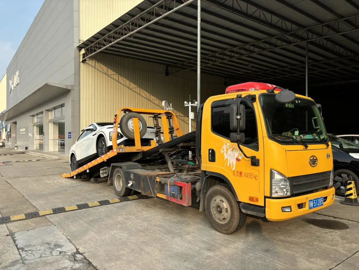 不过中间有点小插曲,10号那天我看到订单显示车子已到店,正常情况下应该要两到三天才可以提车,但由于家里的原因必须要我在8月10号那天提,不然就得等到9月份才能提,这跟我们这边广东某些地区的习俗有关,不能在农历7月提车或置业等喜事,所以没办法我只能跟交付小姐姐沟通能不能就10号当天提,正常来说确实不能提,因为那天刚好也是周六,车管所放假没法办理临牌,所以车子没法提或者开出道路来,但我又要当天提,怎么办呢,于是我又想到另一个办法,直接叫个拖车从交付中心直接给我拖回来,跟交付小姐姐说了我这个想法,交付小姐姐也问了一下领导,后面给我答复是可以,那时已经是下午了,我就立马叫拖车,拖车司机代我验车等办理所有手续,司机大哥也很仔细很认真的检查,每一处都发视频和拍照给我,检查完直接上车拖回来,哈哈哈