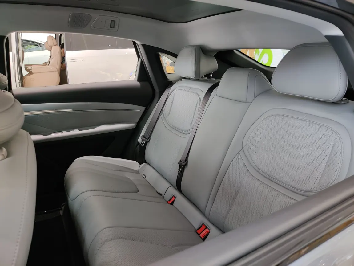 当然质感肯定比不了特斯拉,所以我说这个风格很对我胃口。前排氛围灯白天基本看不见,夜晚还可以。说完了前排的空间和设计,着重说一下后排的空间,也是被大多数人吐槽的一点,就是后排座椅角度奇怪,是向上翘起来的,而不是很平,其次后排空间不够大,身高180以上有点局促,具体看下面我的实拍图,我净身高178cm,按照座椅的角度坐,而不是采用葛优躺的姿势,头顶大概2-3指的空间,个人觉得后排这个设计不合理,我很不喜欢!应该让后排空间更大,弱小一点后备箱的容积,所以后备箱的空间就不用多说,超级大!