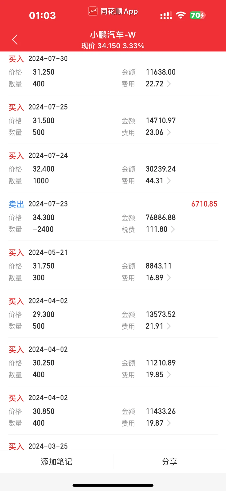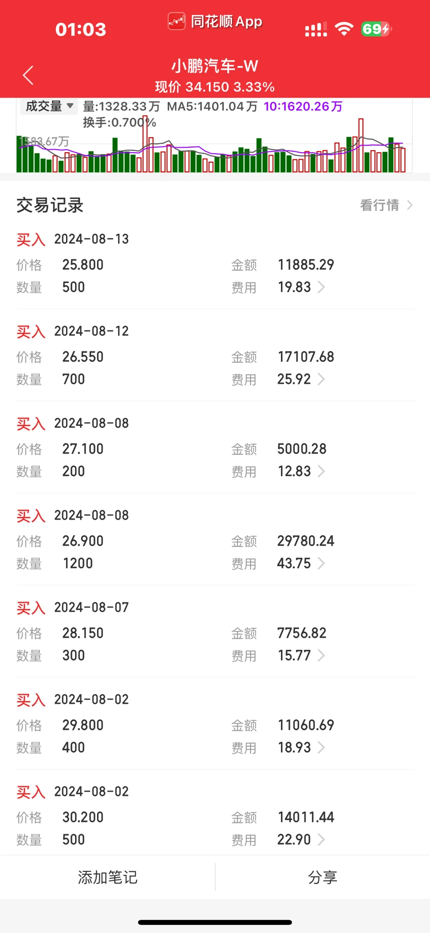 20多块一股的鹏厂票估计难有了,最近买入的一直锁仓中,期待翻倍利润,目标价50.88港币一股,目前25个点利润了,鹏子的票133港币一股也买过,近两年股票在20-130价格之间起伏跌宕,刺激,我是铁粉鹏厂的,买了2辆小鹏的车,技术和产品没得说,加油吧,亲爱的鹏厂,真的能到100港币一股,直接换X9啦!
