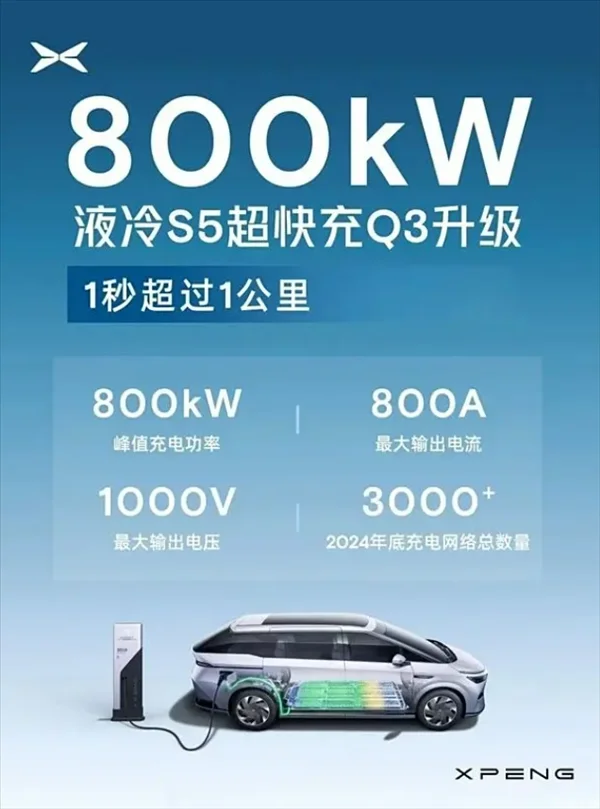 #超充体验官# #S5新站打卡# @充电小助手 今年小鹏发布了S5液冷超快充站,终端功率最大 800KW,插枪启动速度小于13秒,最大输出电流 800A、最大输出电压 1000V,可实现充电速度“1秒超过1公里”,并新增枪头状态智能指示灯、全回路漏电保护+毫秒级断流保护等实用功能,提供更快、更智能便捷、更安全的补能体验。