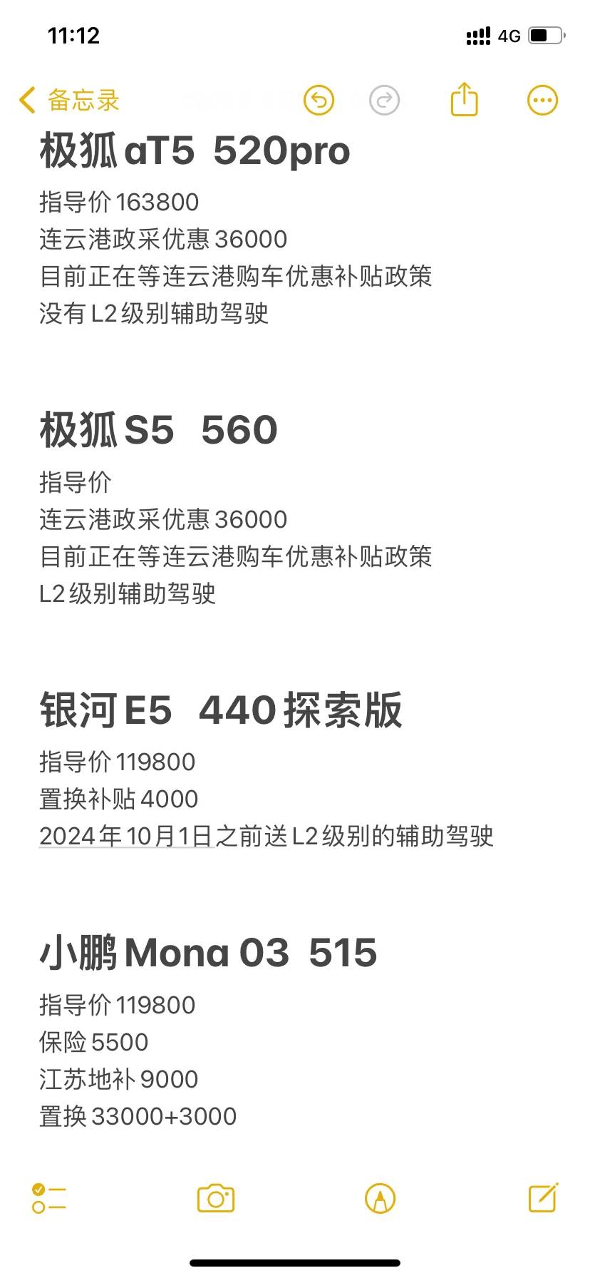 9月1日,跟我老婆周末又一次去看了看车,试驾了银河E5的440探索版,整体还算满意,但是电池问题和440的续航,总感觉心里比较虚;再次去了极狐店,销售又推荐了极狐S5,各方面都很优秀,但就是这个跟宋差不多的“龙”头,让我怎么也喜欢不上来,纠结ing。