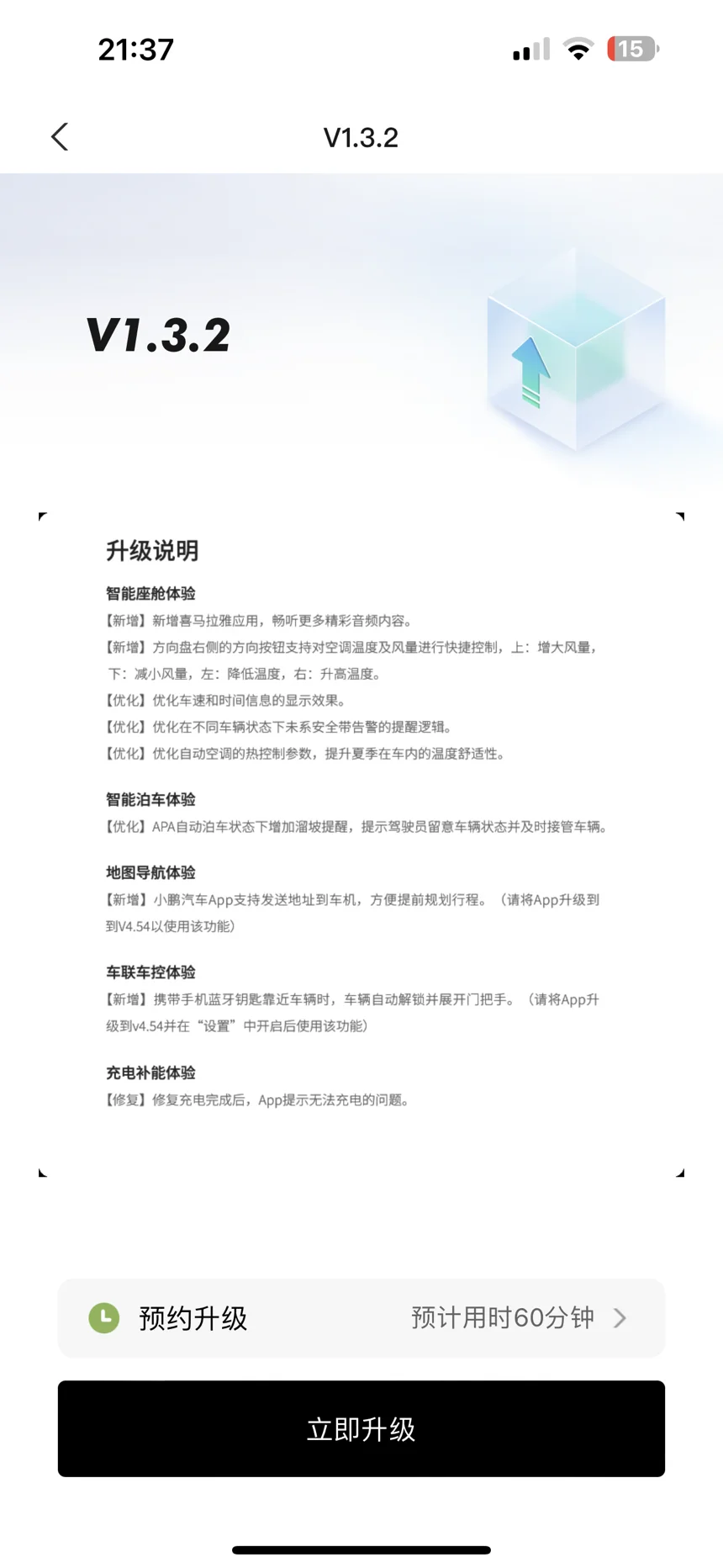 小鹏Mona M03 1.3.2 版本 OTA ,小鹏速度就是快