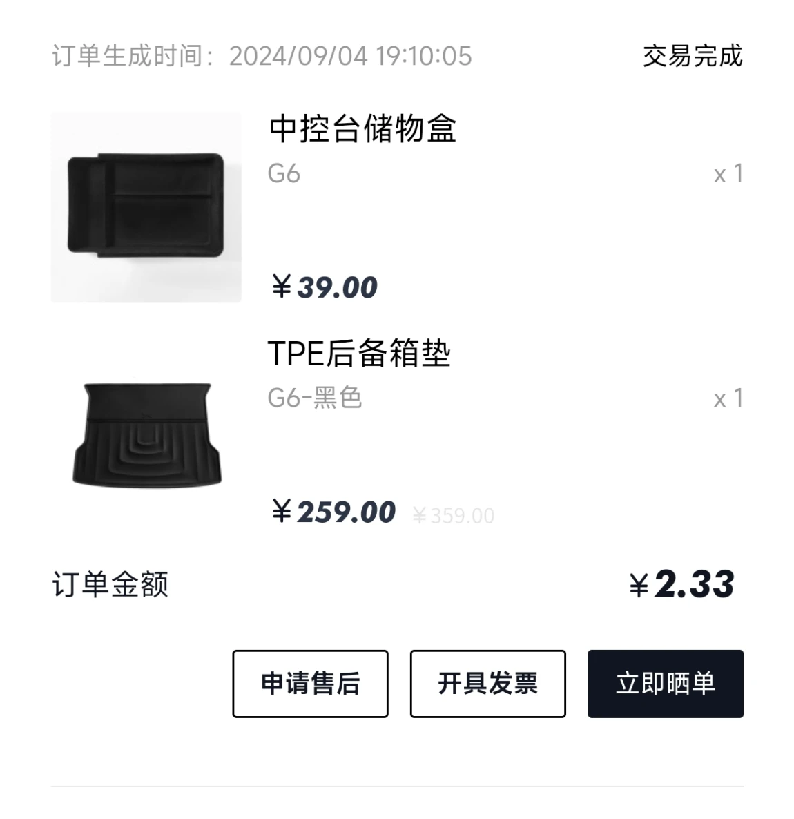 好,就到这里,其实还买了香薰 不太好用,还有划痕车贴,在这里再次问候那个划我车门的人一家人早日在阴间团聚。