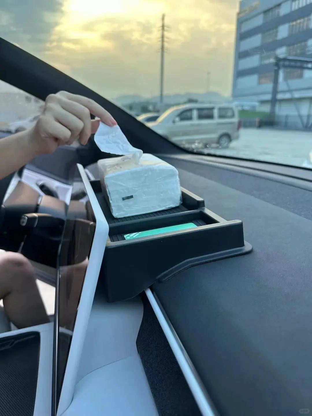 6:屏幕后的储物盒,可以放纸巾,还留了一个放无卡ETC的空位,申请了无卡的etc还没到,到了就有专属位置放了。