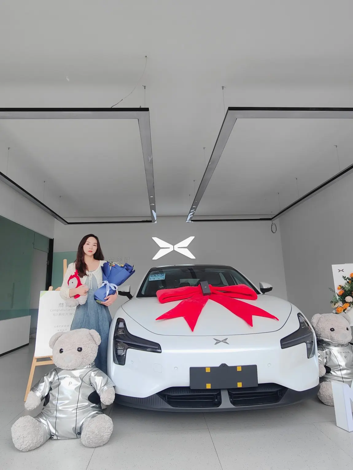 最后不得不夸一夸小鹏给的提车仪式太足了,抱上小熊和鲜花:怎么美怎么来,幸福感满满!