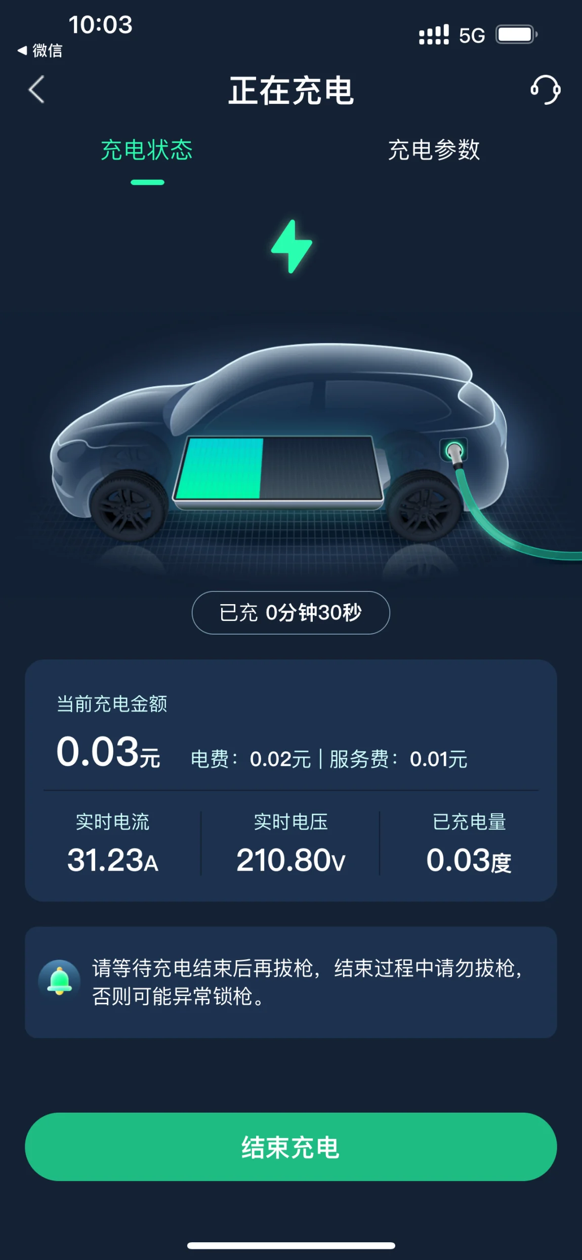 我用的是 e 充电,也就是国网的慢充。下图是充电参数。