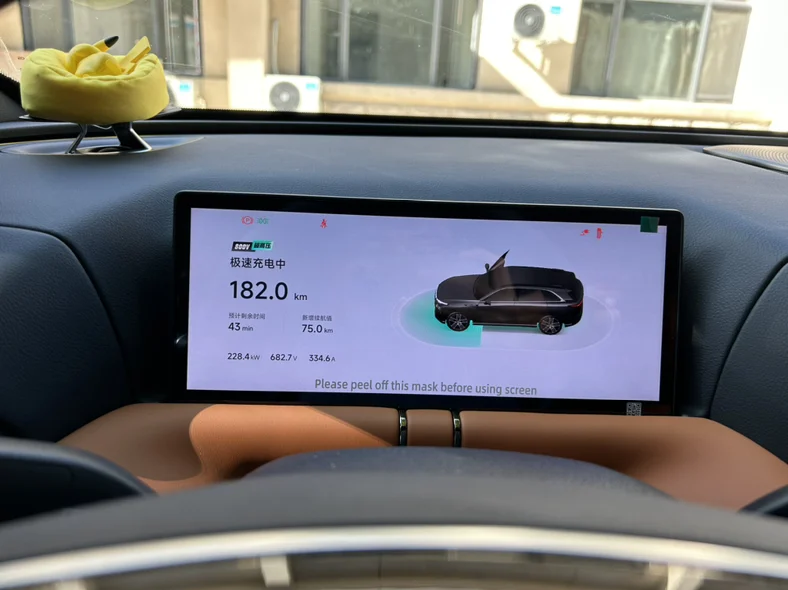 2.充电界面信息显示(车机 手机端)非常详细,尤其看到800v超高压的标志,满满的科技感,表显当前续航值蹭蹭上涨,数字跳的飞快,很惊喜!