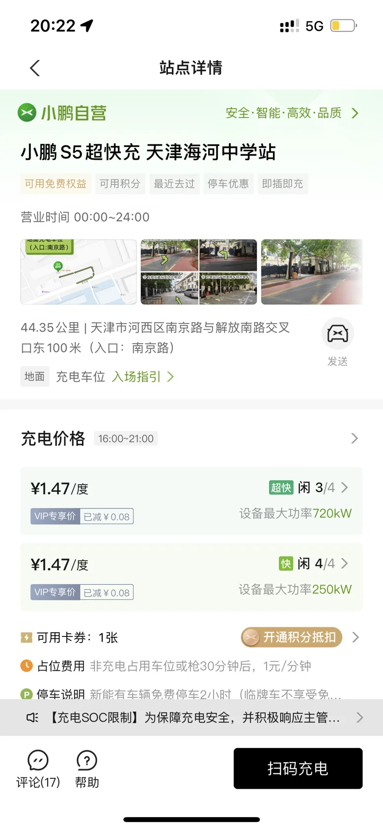 1⃣️地址:小鹏S5超快充 天津海河中学站