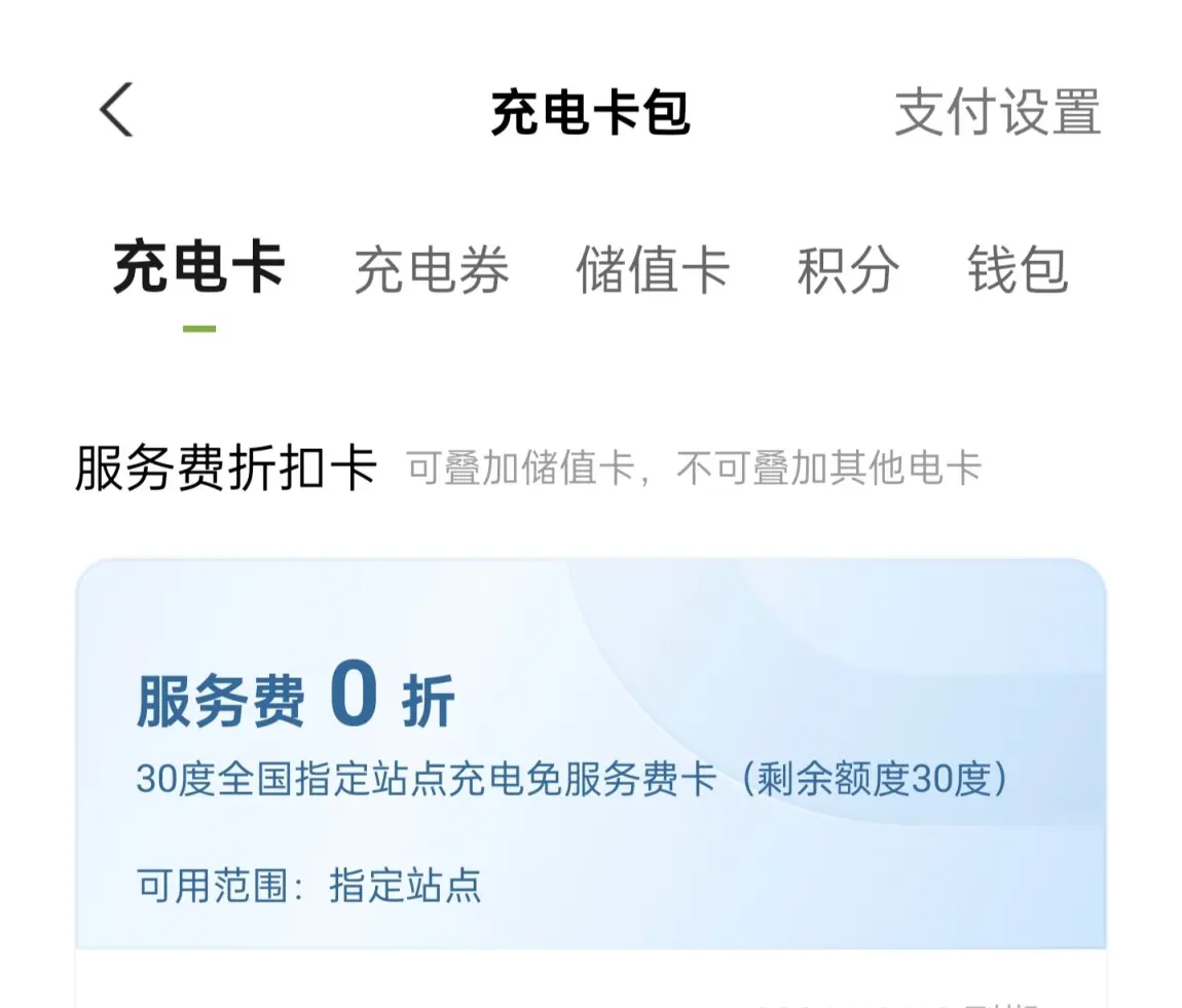 要记得,该充电免服务费卡截止日期是10月10日,所以大家要记得去用噢,可以在“充电卡包”里面查看卡卷。
