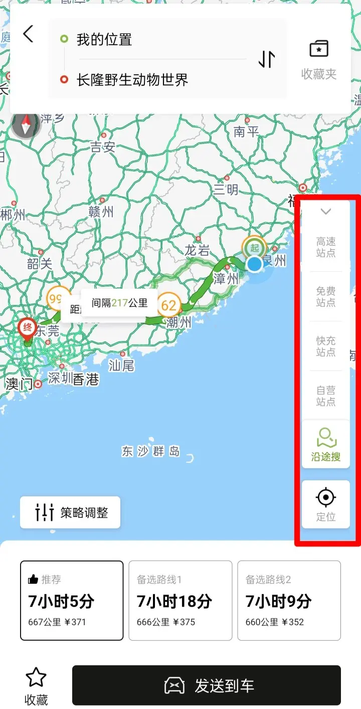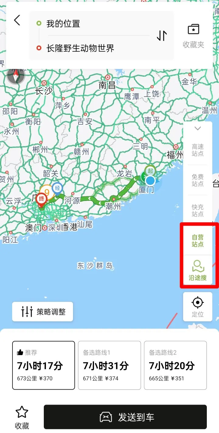 然后,把我们选中的自营桩设为途径点,就可以发送到车机上啦,是不是很方便呢。