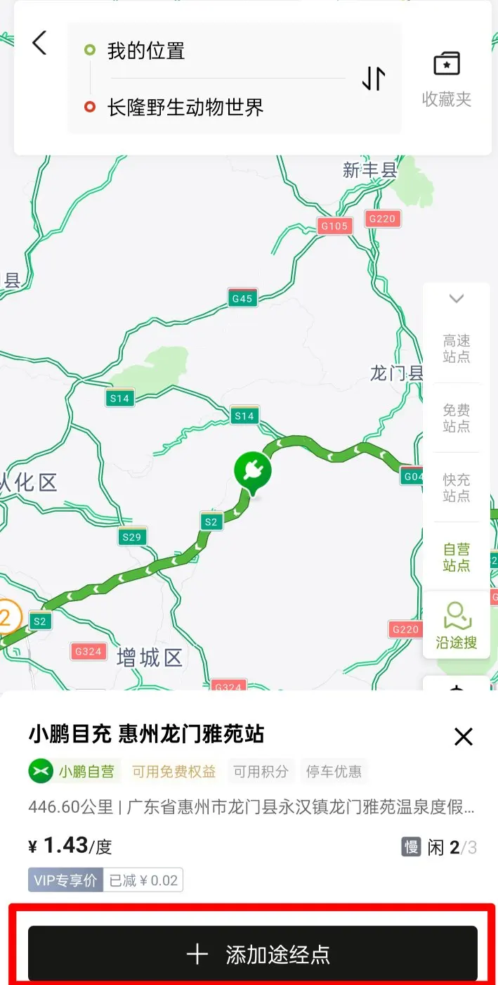 我们根据自己的里程来计划,没有免费充电的鹏友,可以寻找合适充电的自营桩,毕竟能用积分抵扣嘛,嘿嘿