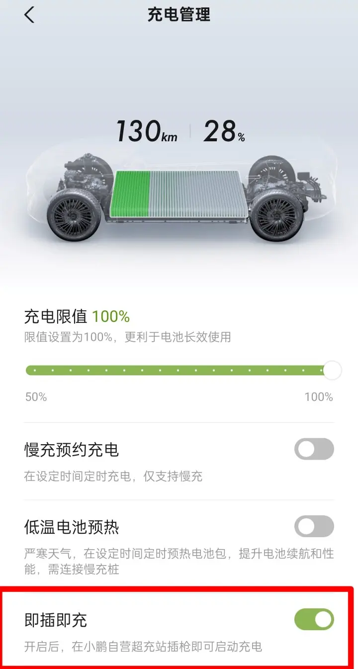 小鹏的超充桩不仅在补能速度上有很好的体验,在无感充电方面更是让用户感到舒适。在小鹏APP内打开“设置—充电管理—即插即充”功能,你即将解锁插上充电枪即可充电,拔下充电枪即可积分自动结算的无感体验,再也不用繁琐的“插上充电枪,打开APP扫码”得充电流程了,真的很方便!