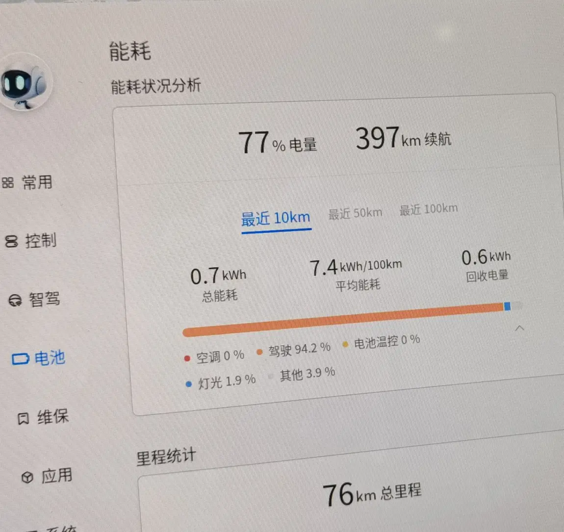 今天没跑高速,据说跑高速电耗也会增加的比较厉害,改天跑高速再试试,应该也不错。