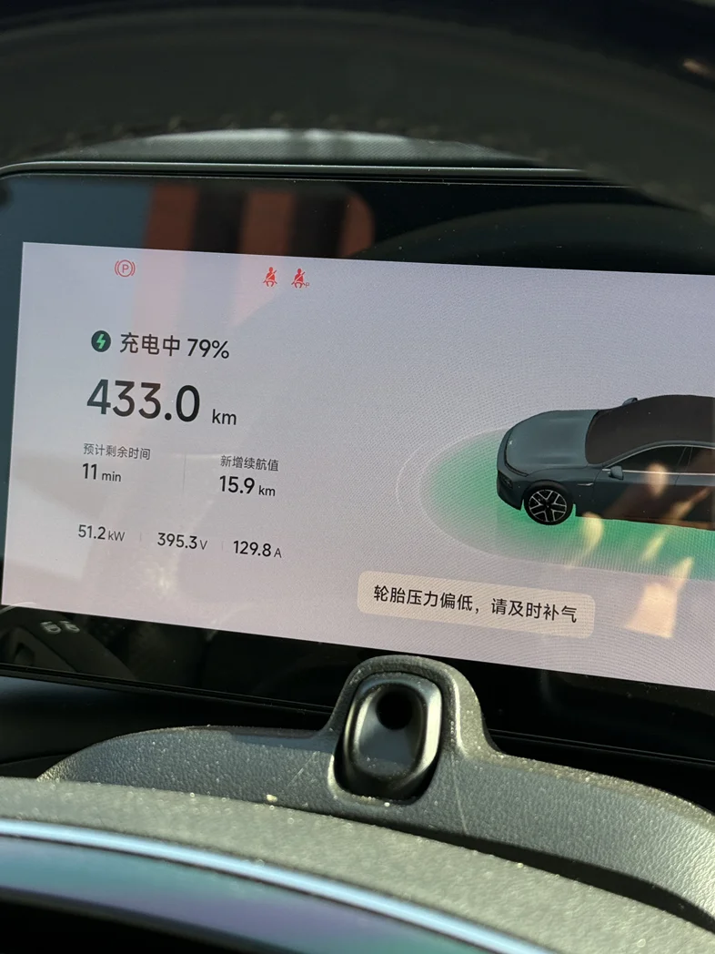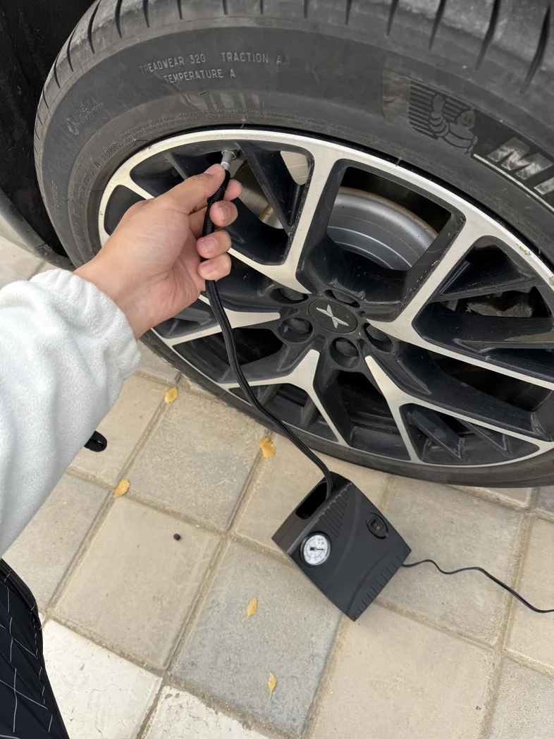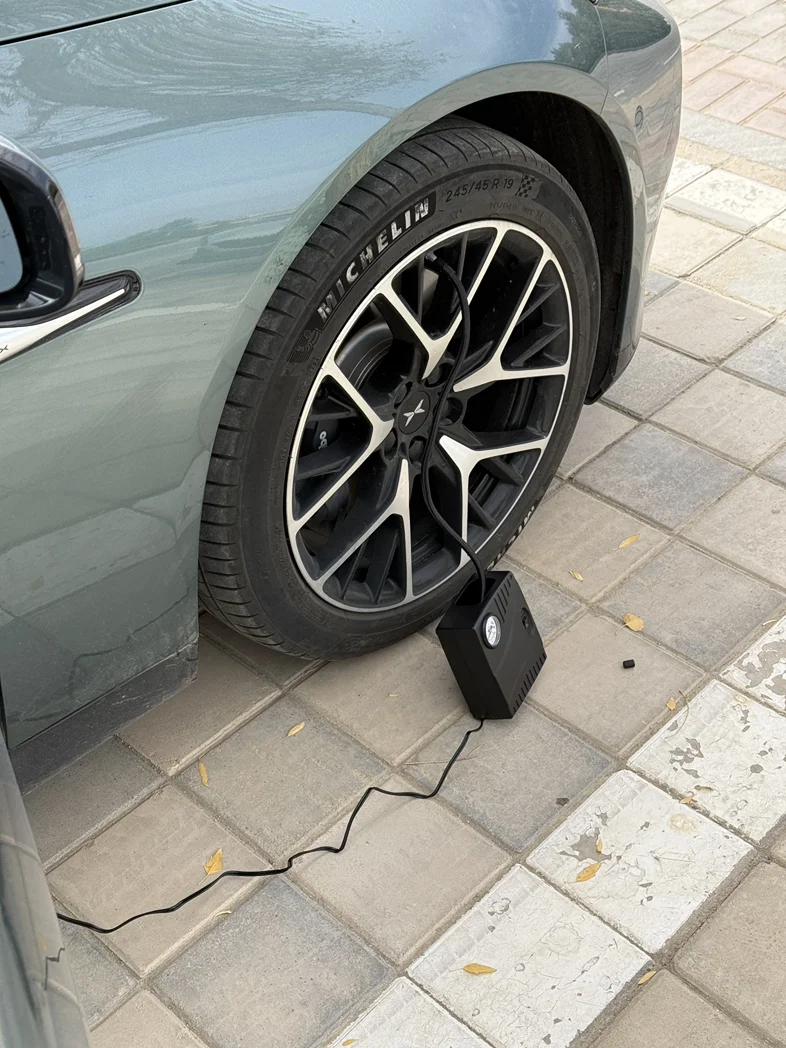 【省钱💰技巧】关键时刻还是靠谱,晚上休息在高速服务区,一觉醒来胎压偏低提示,就问了旁边的服务区修车铺,一个轮胎要价十元,四个轮胎还给我打折。突然想到小鹏随车的充气补胎应急工具,插到点烟器上直接就能用了。充气数值建议比显示的高一点,如果太高可以再松一些气。