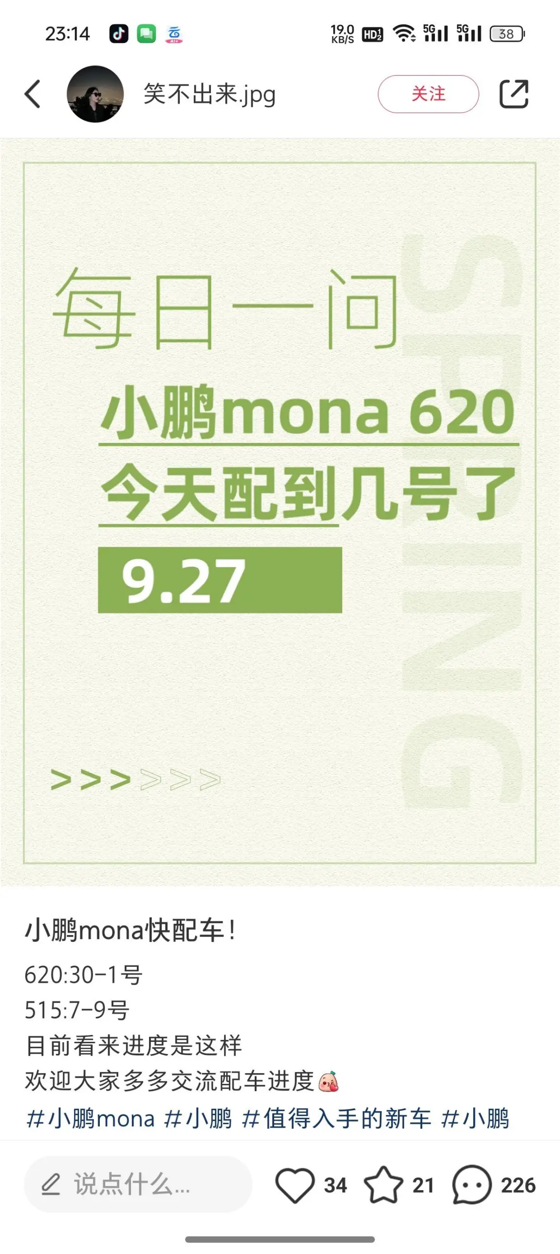 等待交付:还有几天就交付了,爱人的心情特别激动,也介绍了几个朋友去试驾。当然,近期我浏览小红书也发现,多数订购 M03 的准车主也在焦急的等待车,希望大师兄抓紧时间!