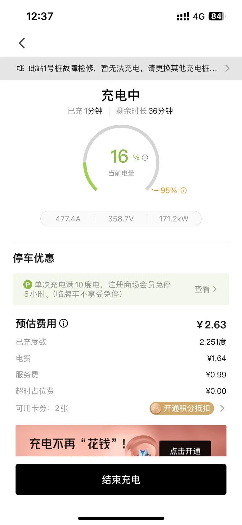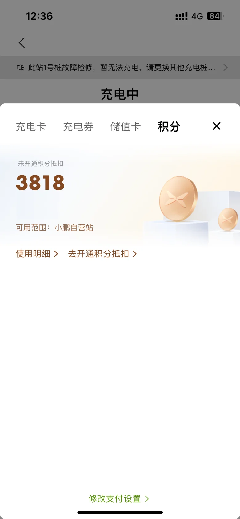 ③目前自营充电桩可以积分抵扣啦,充电不花一分钱(没有免费充电权益的鹏友们记得开哦~)