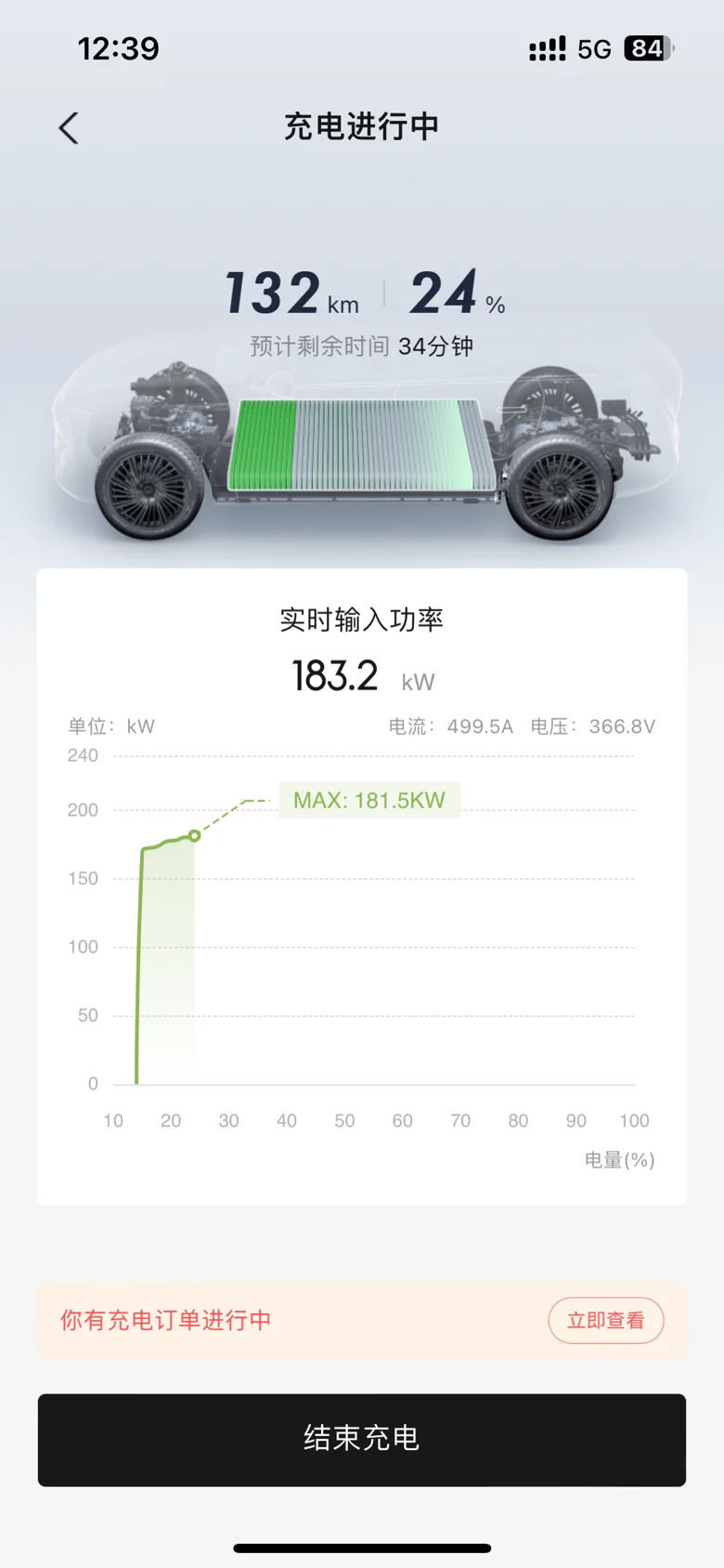 ④30分钟多点就充好了!真是太快了(180多kw!!普通桩子的3倍)